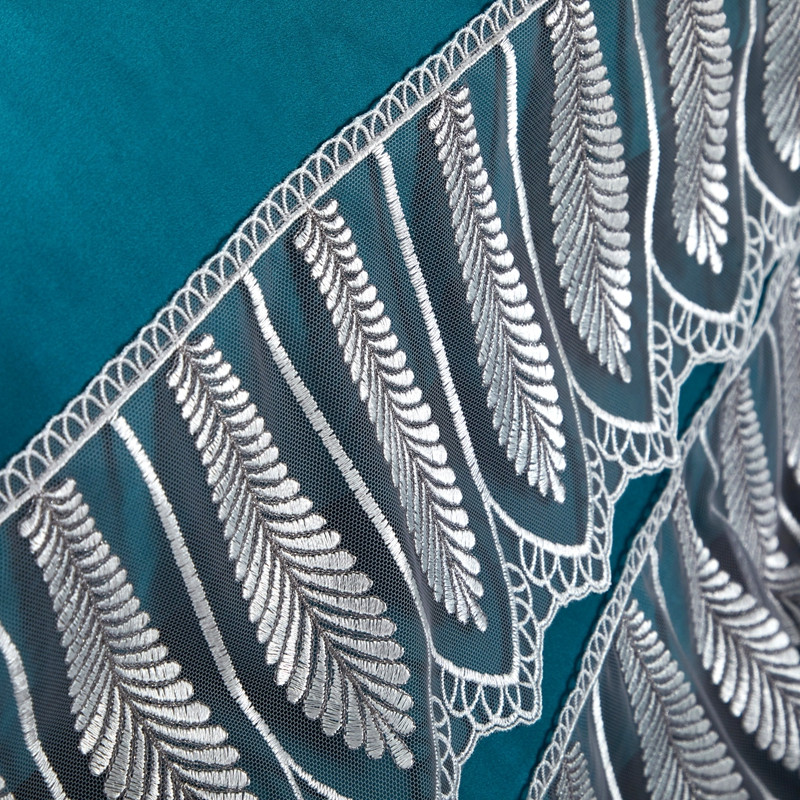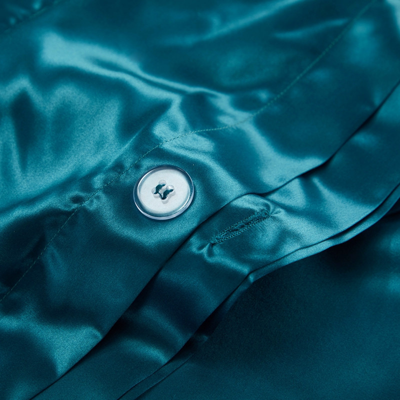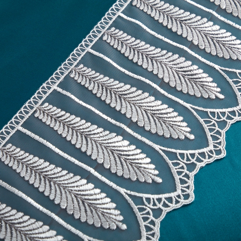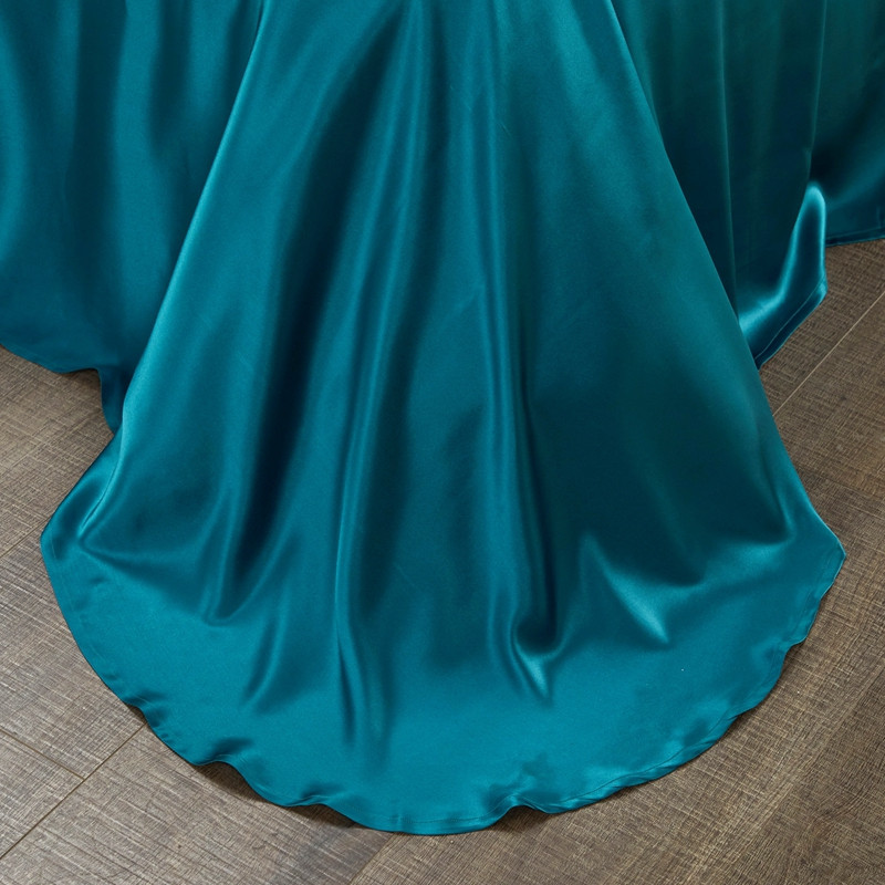 商品名称:雅韵诗真丝馆 2023新款素色真丝四件套 蕾丝孔雀蓝