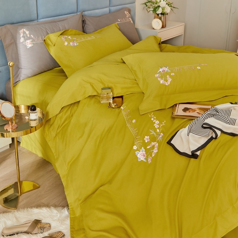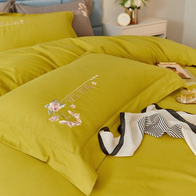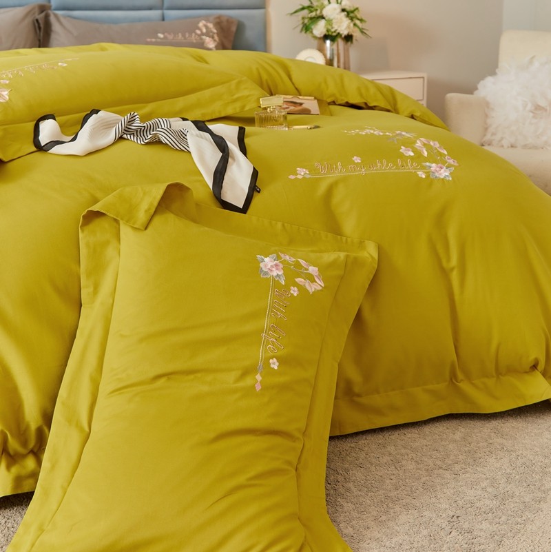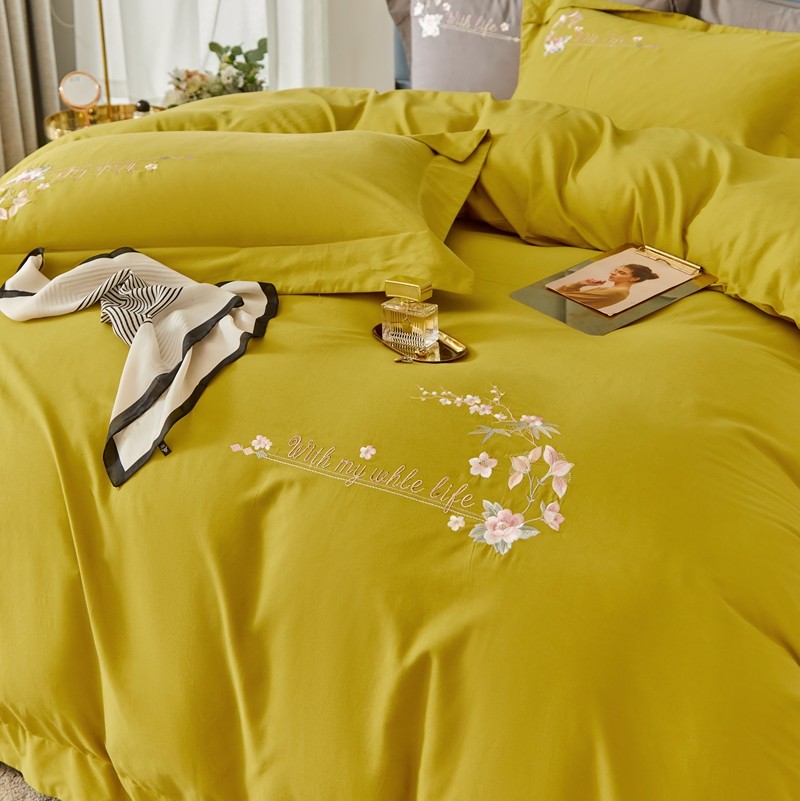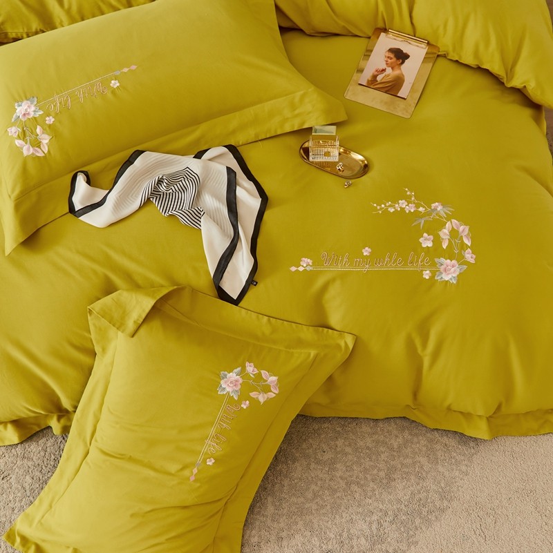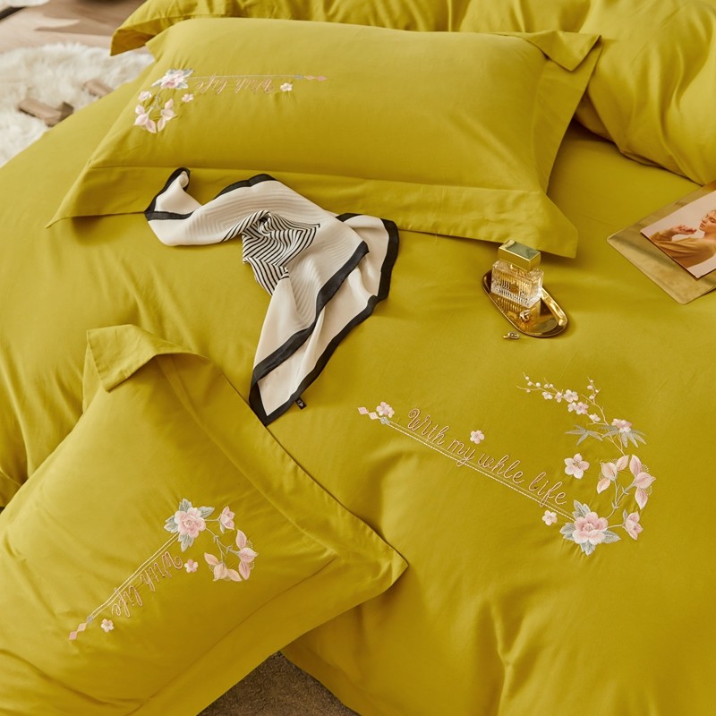 威克凯丽秋冬绣花3221磨毛四件套布鲁斯系列布鲁斯-杏黄