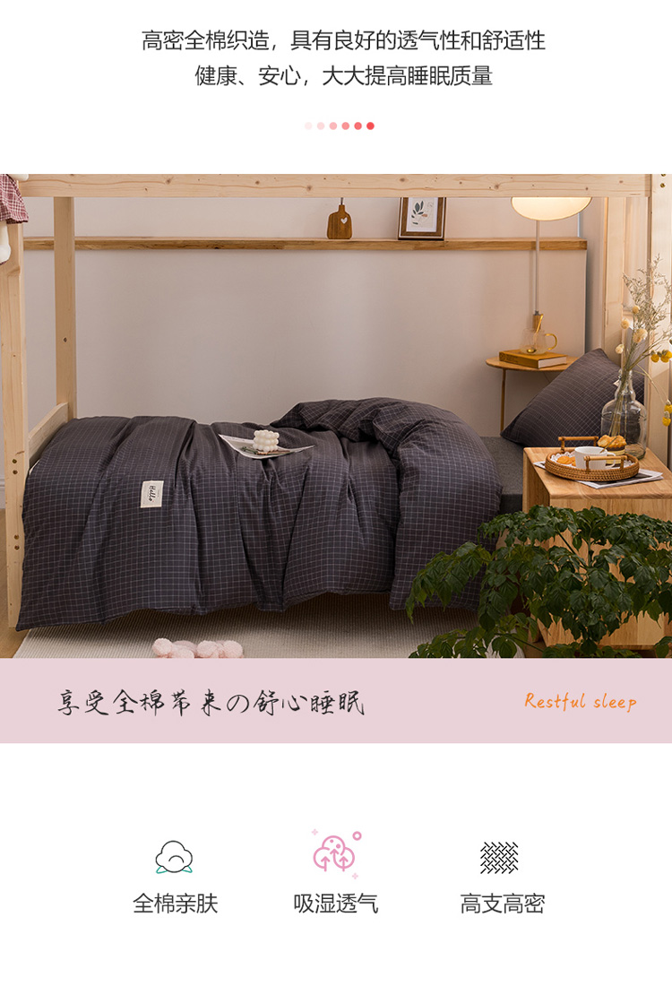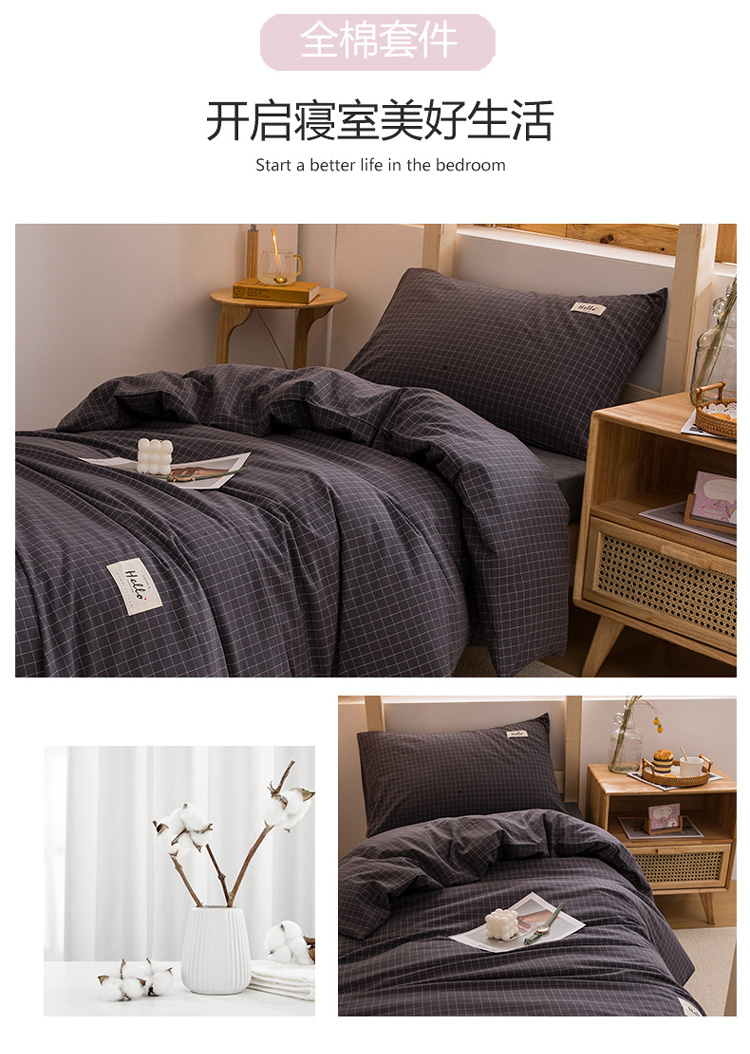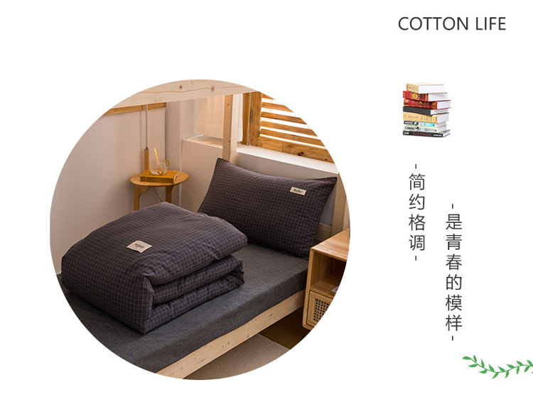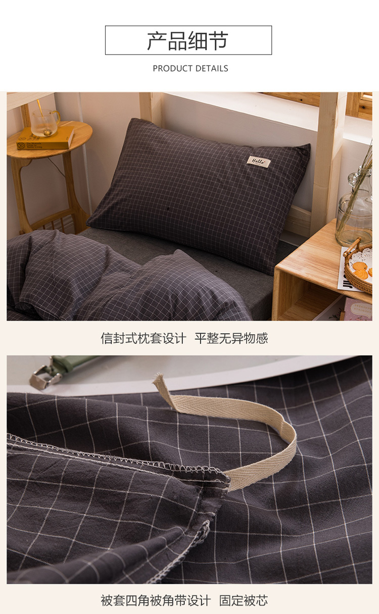 当前位置: 91家纺网 > 商品网购 > 床品套件 > 三件套 > 柠萌家居 2021新款全棉色织水洗棉学生宿舍三件套 灰小格