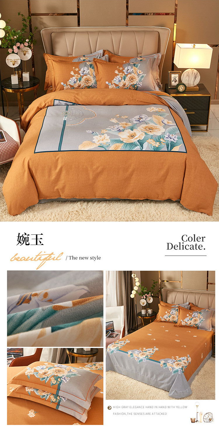 (总)雲归梦 2021新款全棉生态磨毛刺绣四件套,慕思-橙色,慕思-粉紫,慕思-灰,慕思-米黄,慕思-青绿,慕思-天蓝
