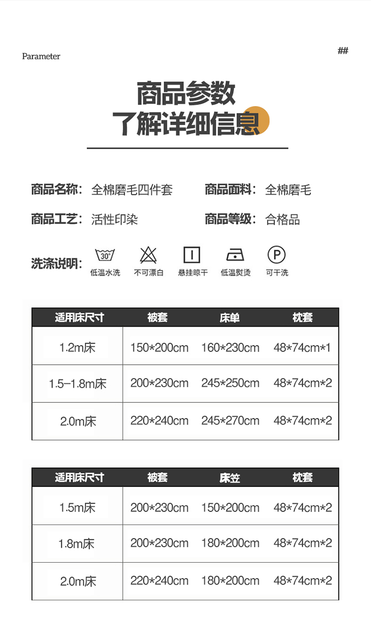 被套200*230cm+床笠180*200+枕套2只 | ¥170.00 |