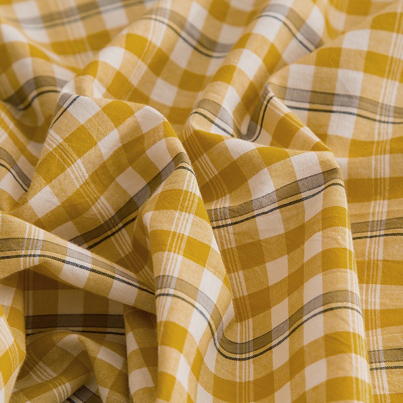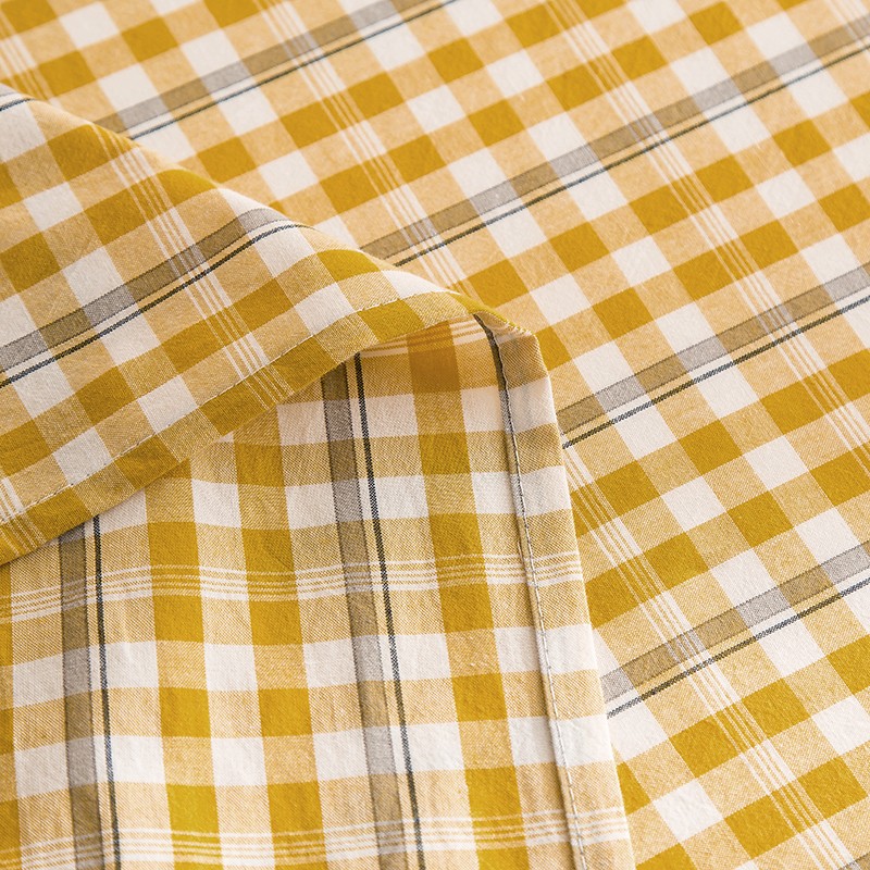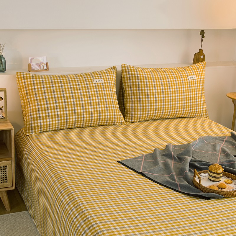 柠萌2021新款全棉色织水洗棉枕套 姜黄小格(一对)