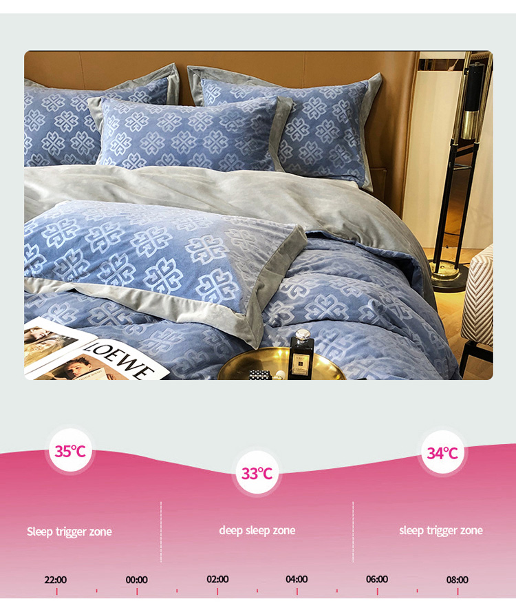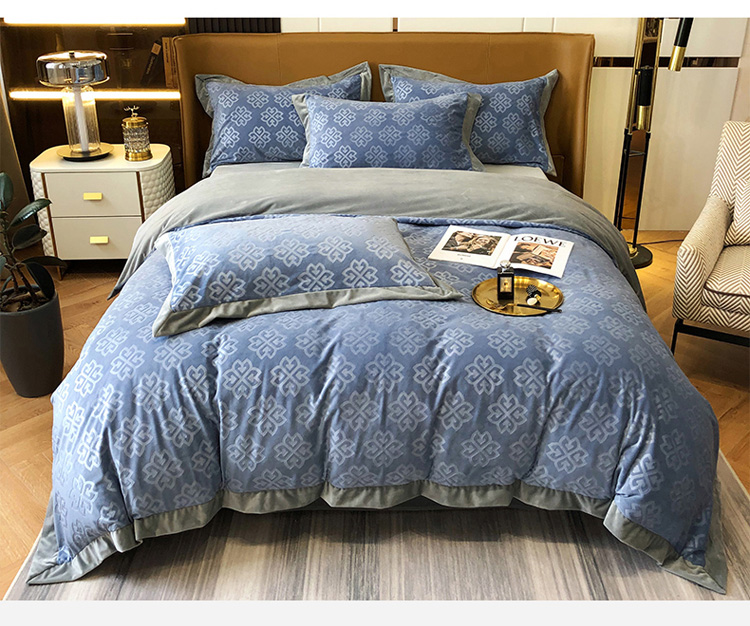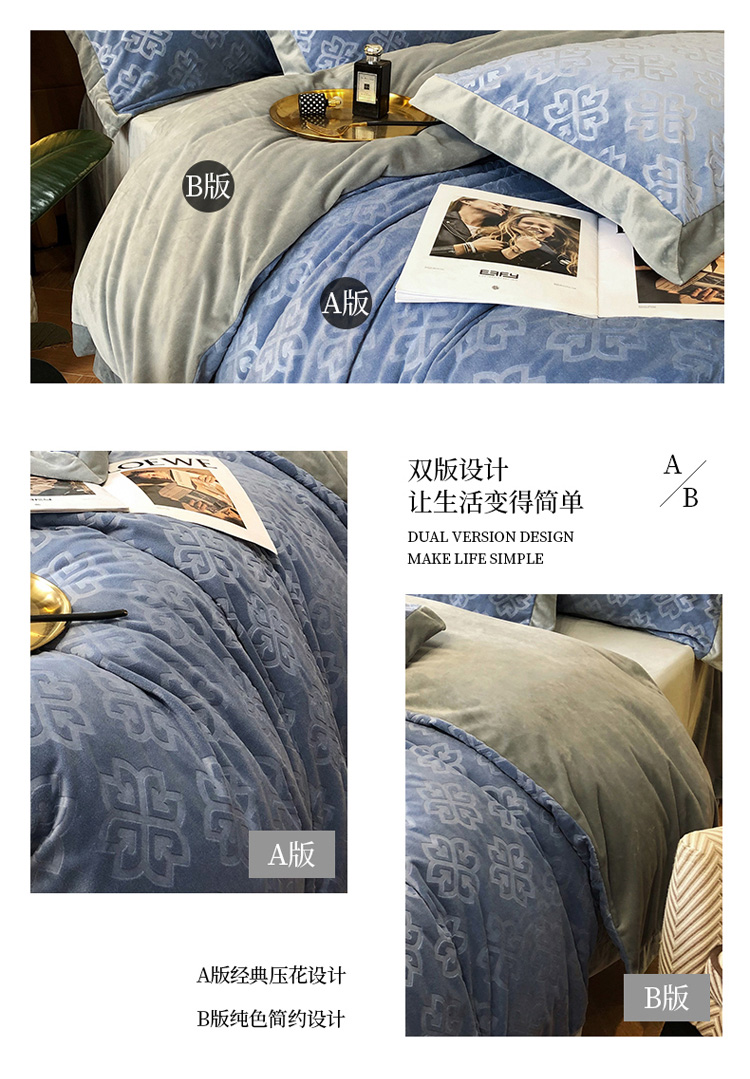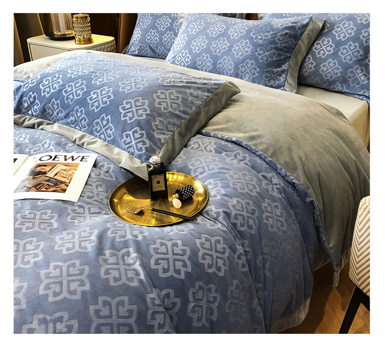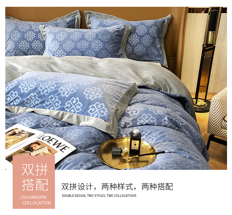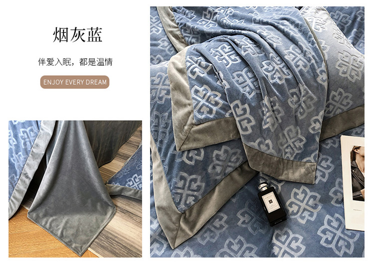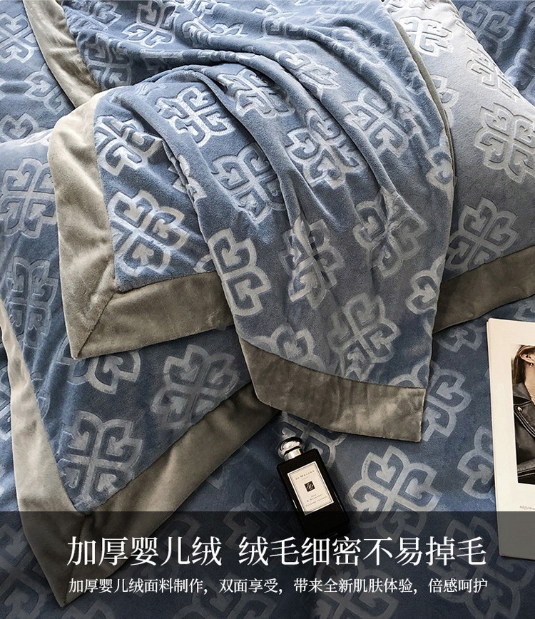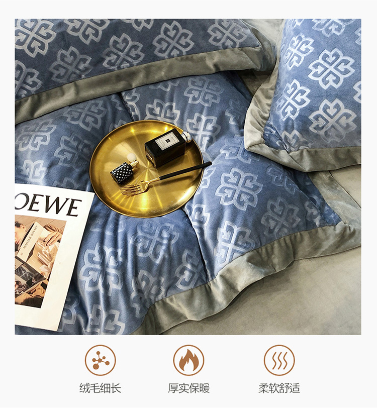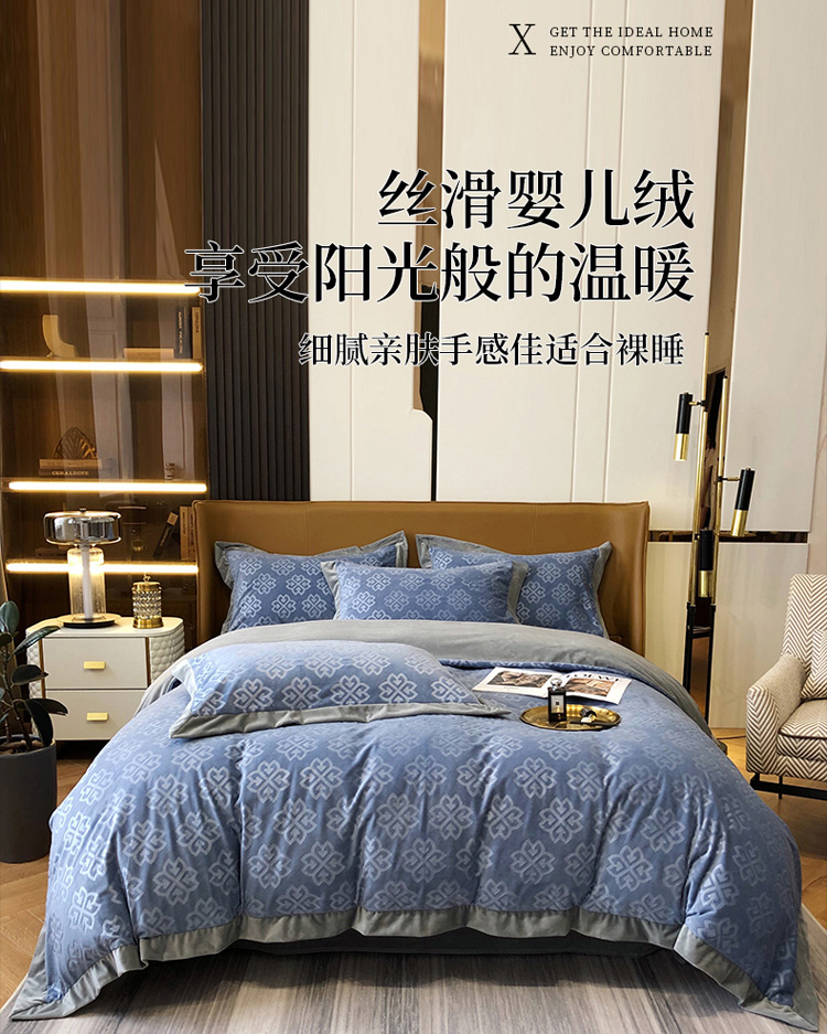爱缦2021格调系列实拍230克婴儿绒四件套 烟灰蓝