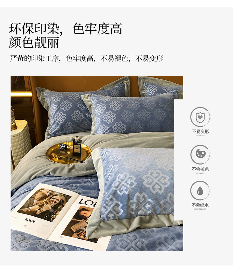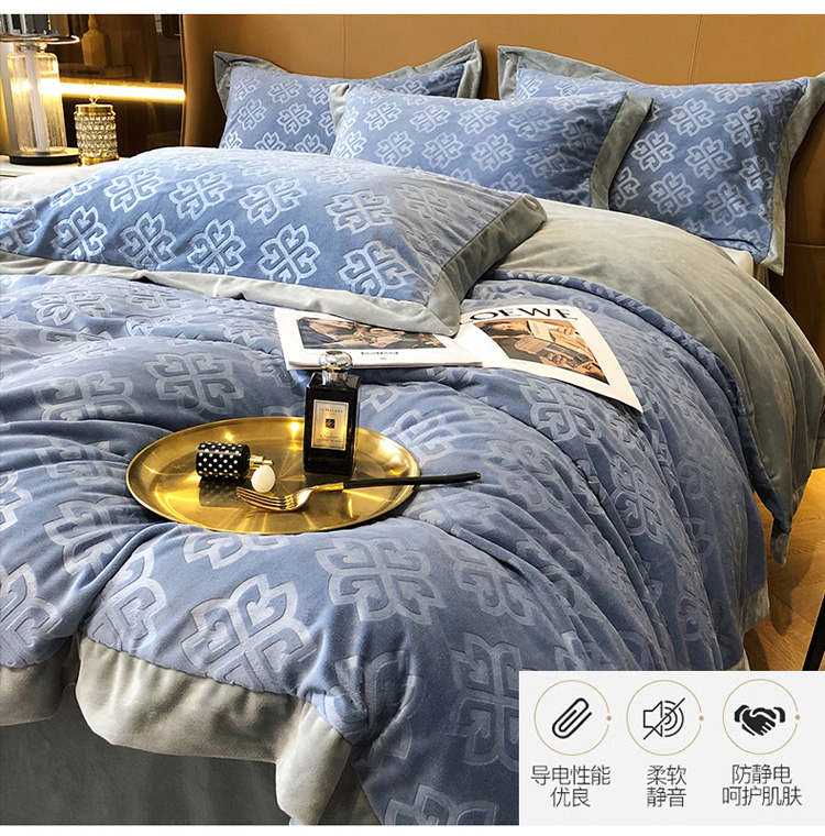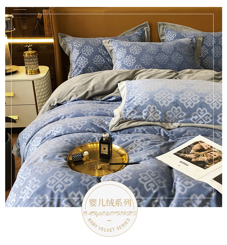 商品名称:爱缦2021格调系列实拍230克婴儿绒四件套 烟灰蓝