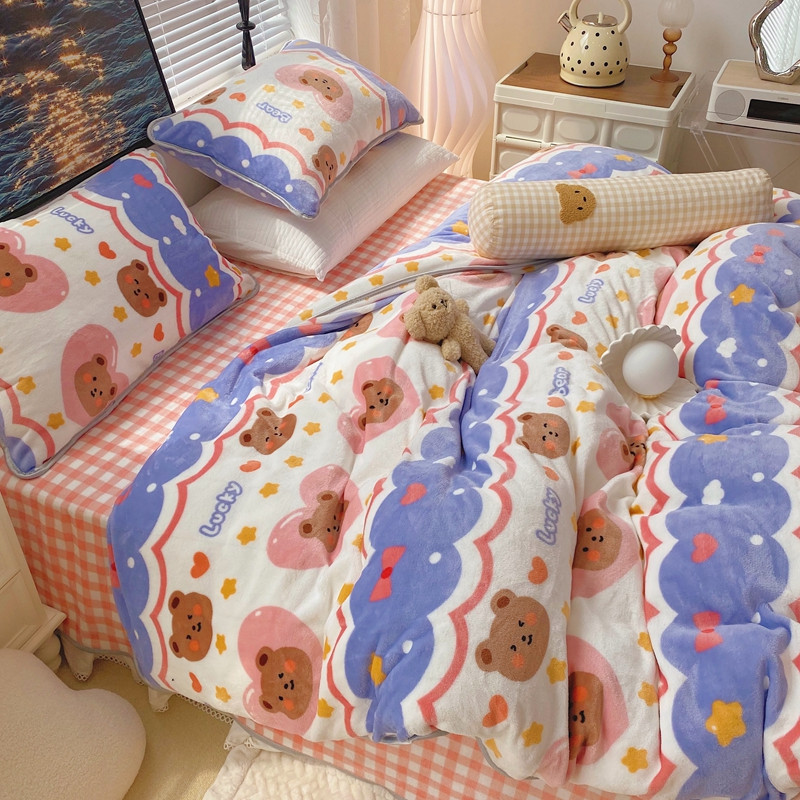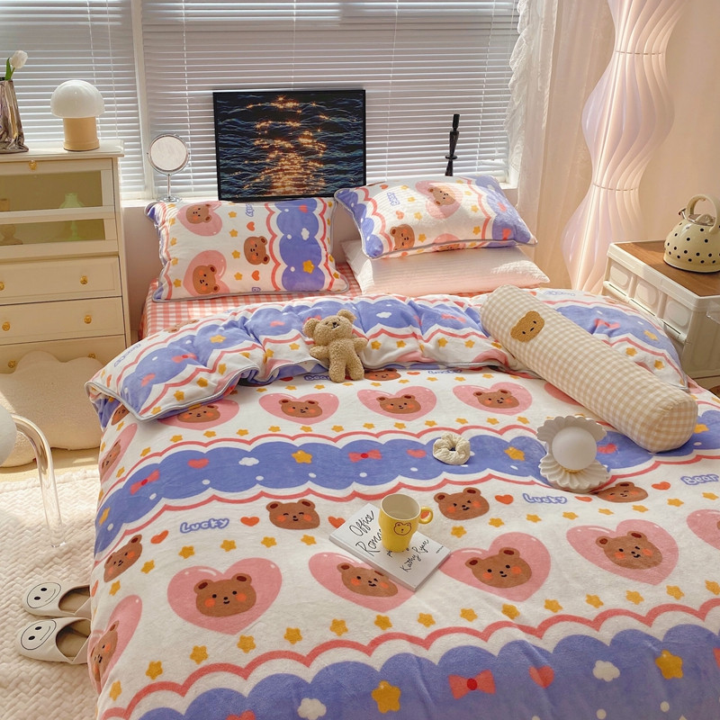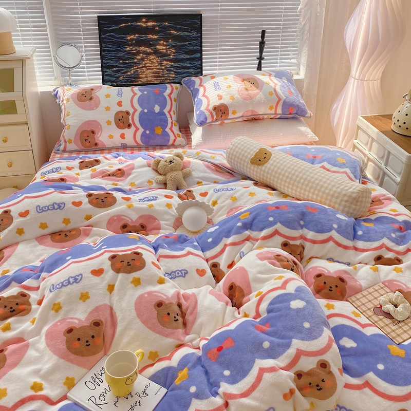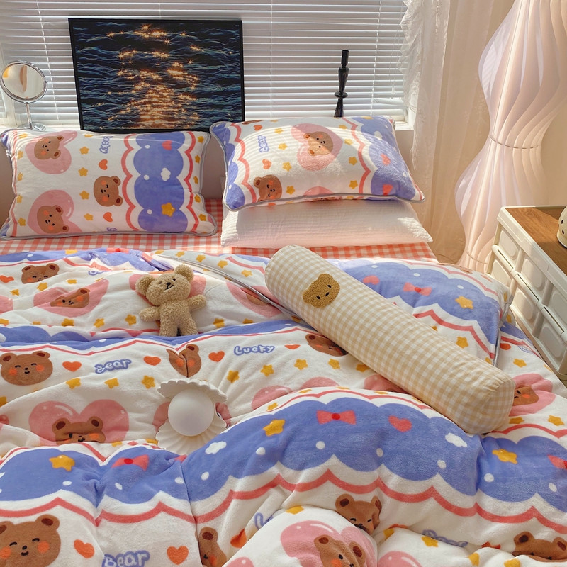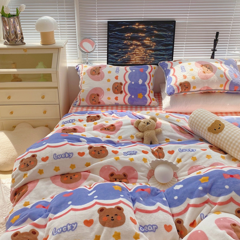 顾里2021新款ins韩国高端保暖牛奶绒四件套 幸运熊仔