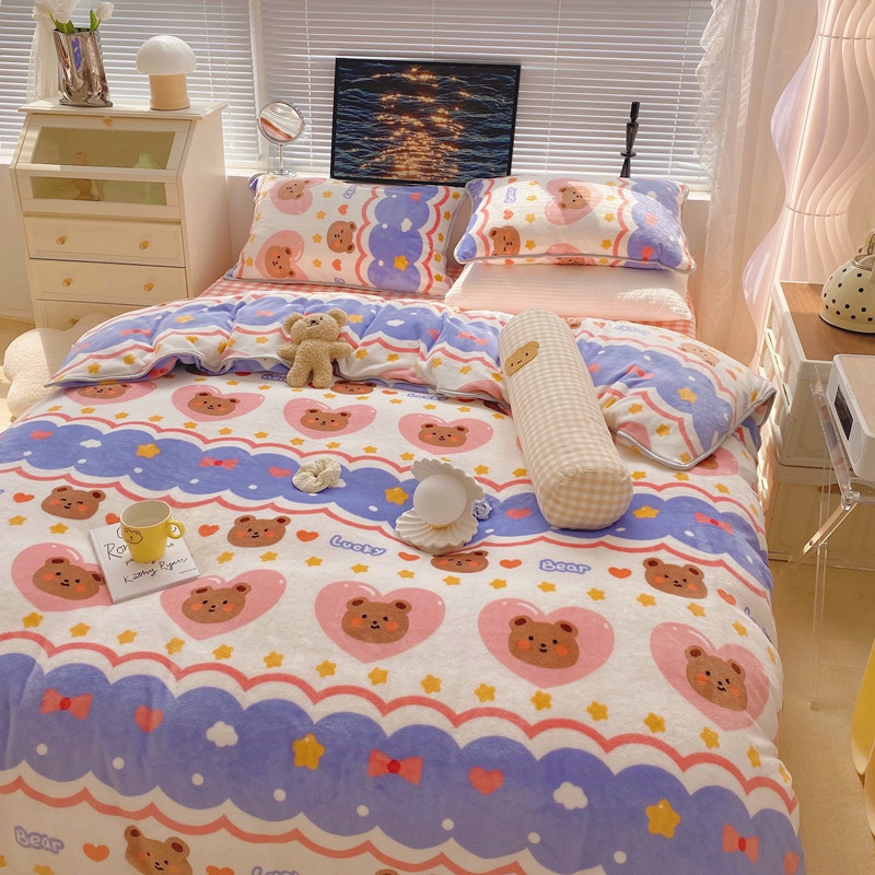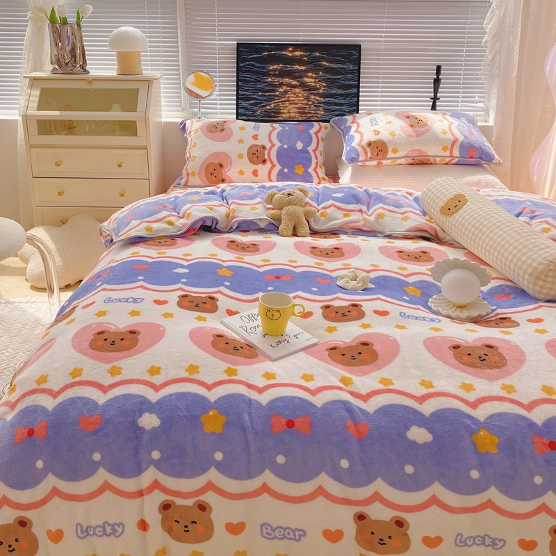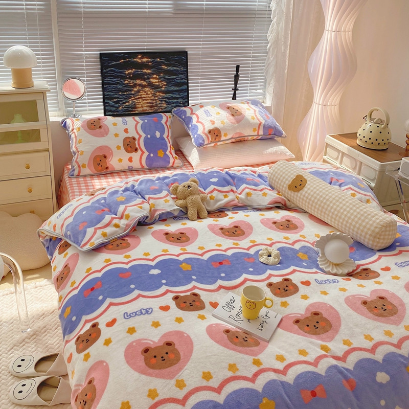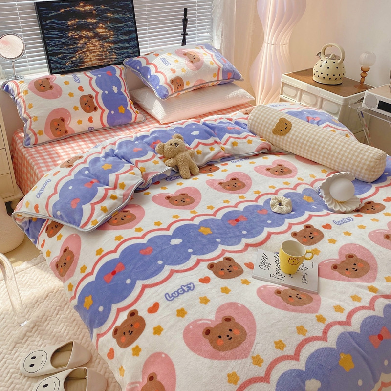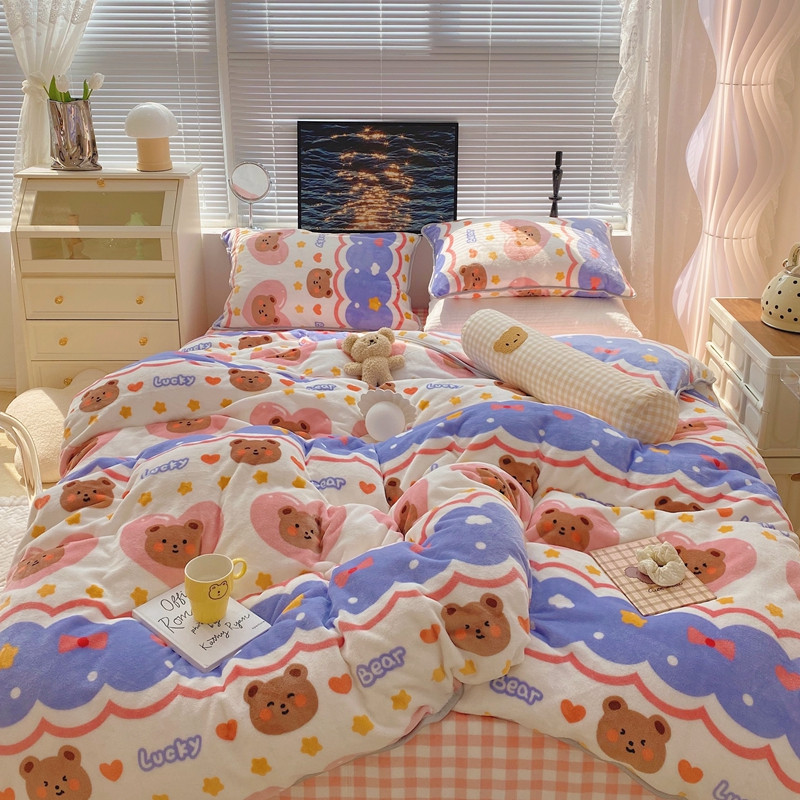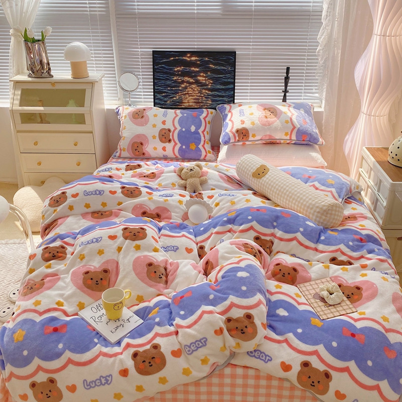 顾里2021新款ins韩国高端保暖牛奶绒四件套 幸运熊仔