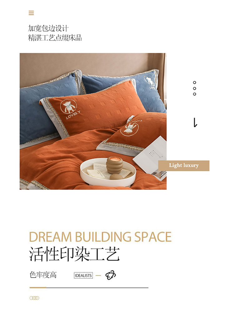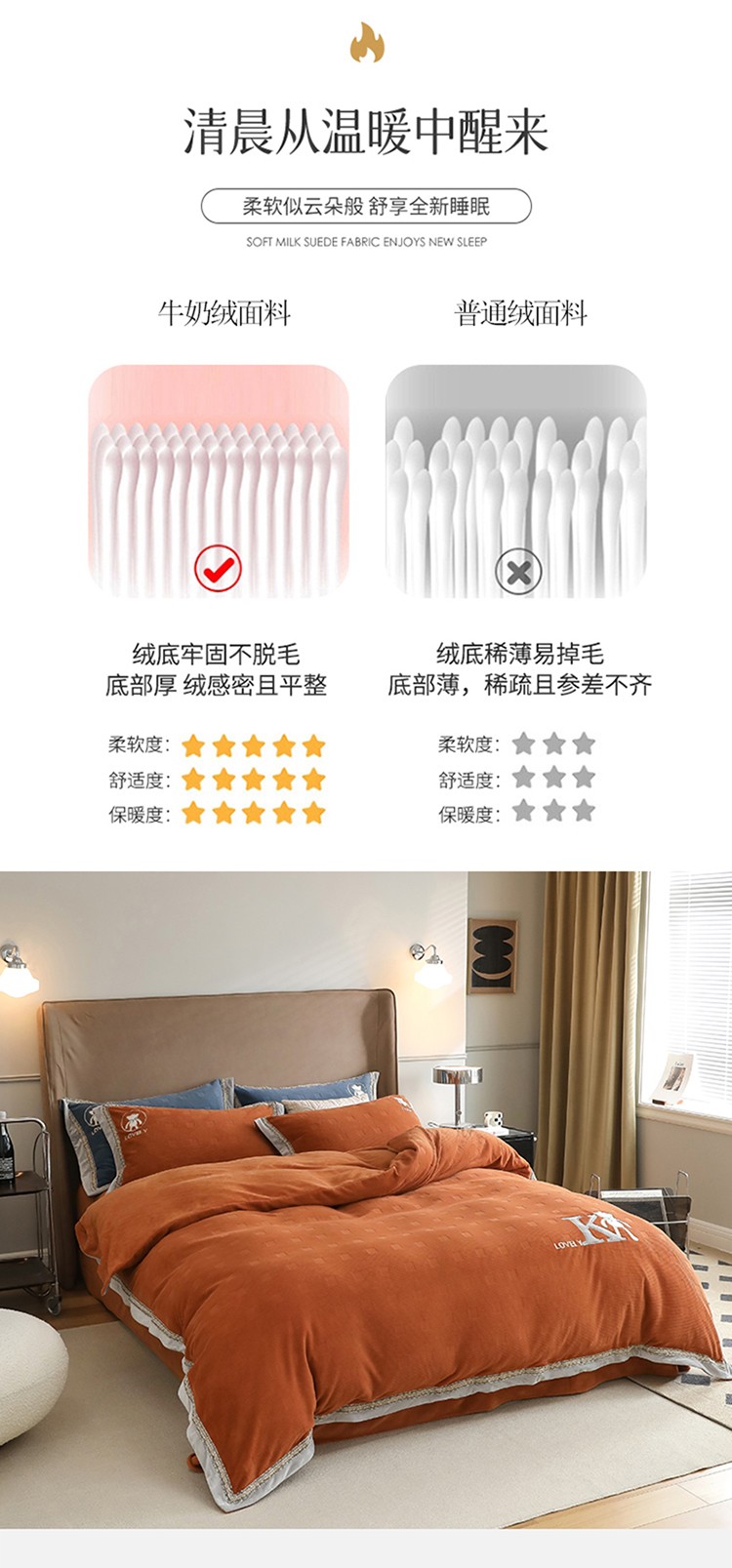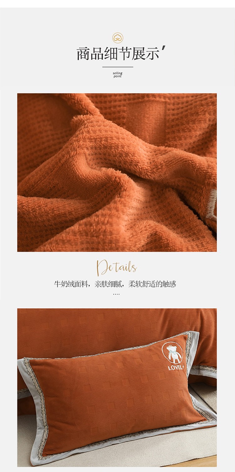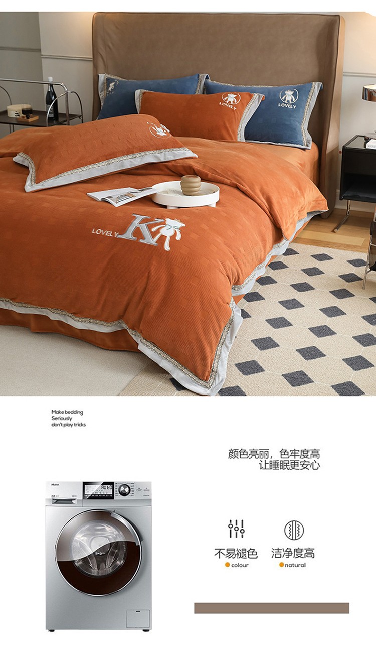 源启生活 2021新款高克重牛奶绒提花华夫格四件套 KK熊橙