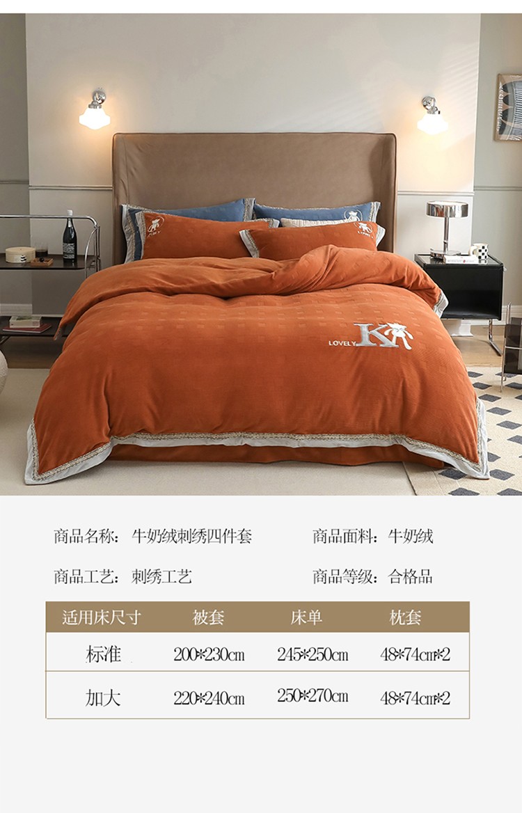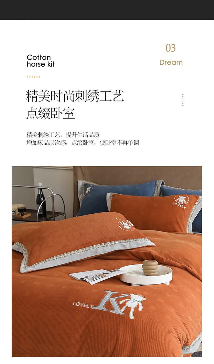 商品名称:源启生活 2021新款高克重牛奶绒提花华夫格四件套 KK熊橙