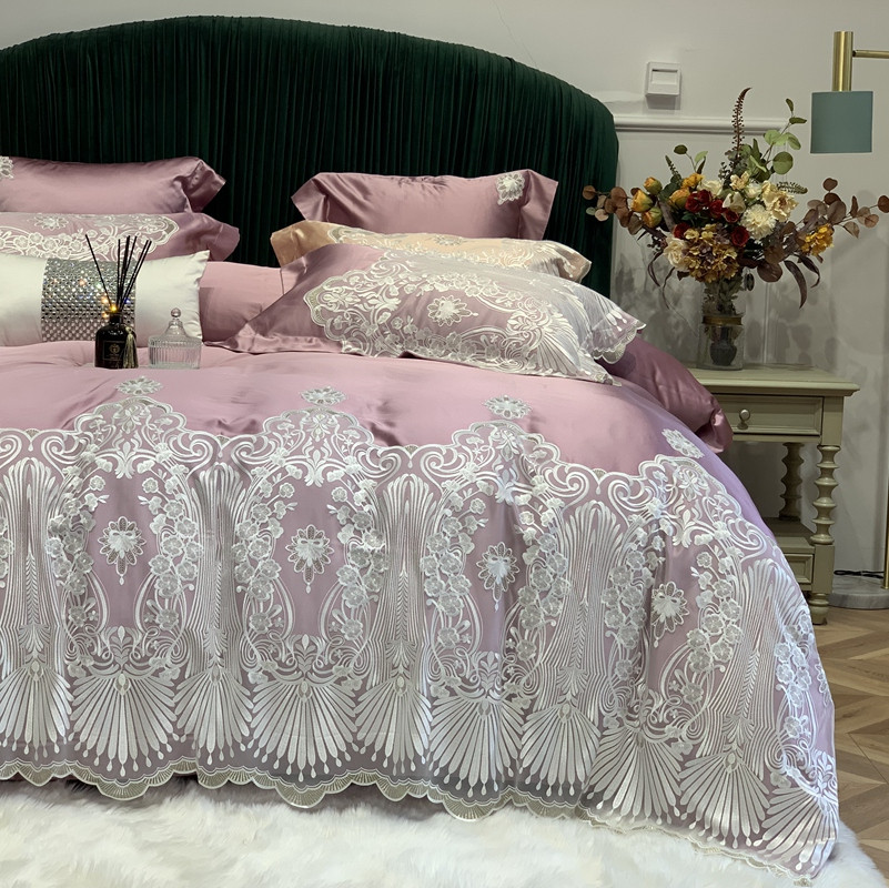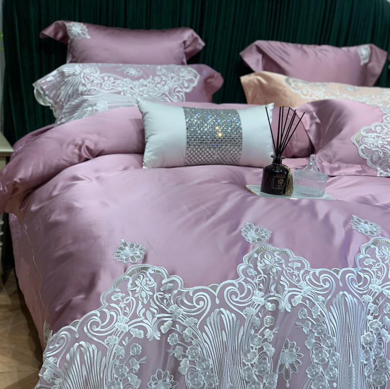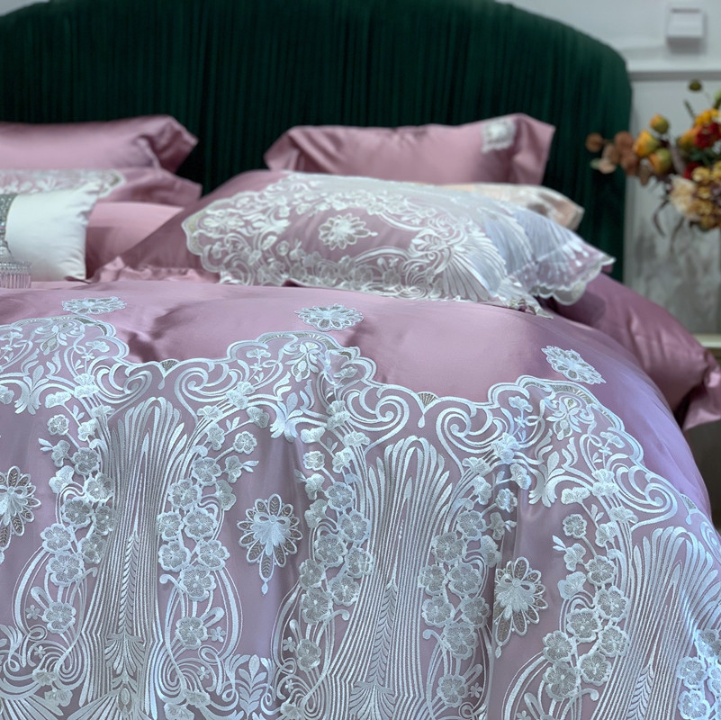 (总)2024新款高端蕾丝重磅真丝棉系列四件套-德鲁斯,德鲁斯 浅粉,德鲁斯 浅灰,德鲁斯 浅绿,德鲁斯 香槟,德鲁斯 紫薇