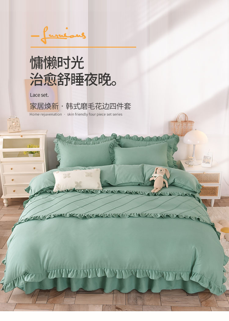 商品名称:(总)芭比蔓家纺 2024新款韩版磨毛花边四件套