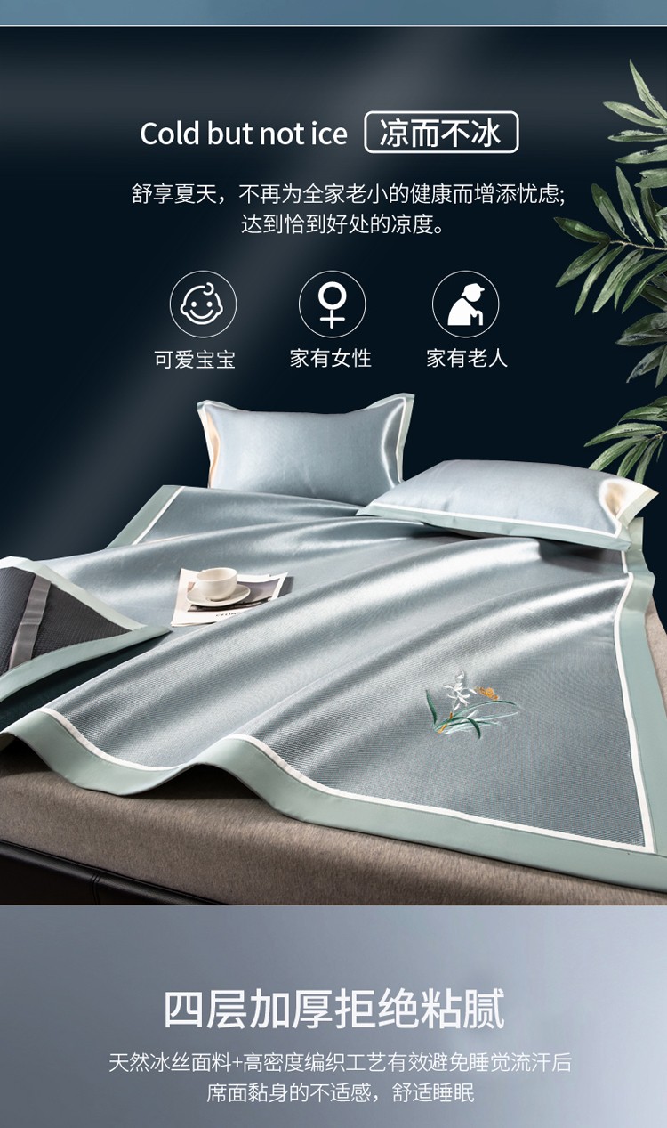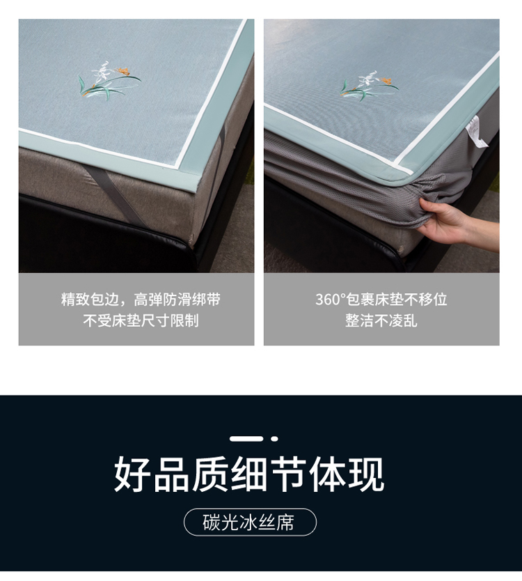 商品名称:欧冠 2022新款高端碳光1800冰丝席系列碳光冰丝-水绿