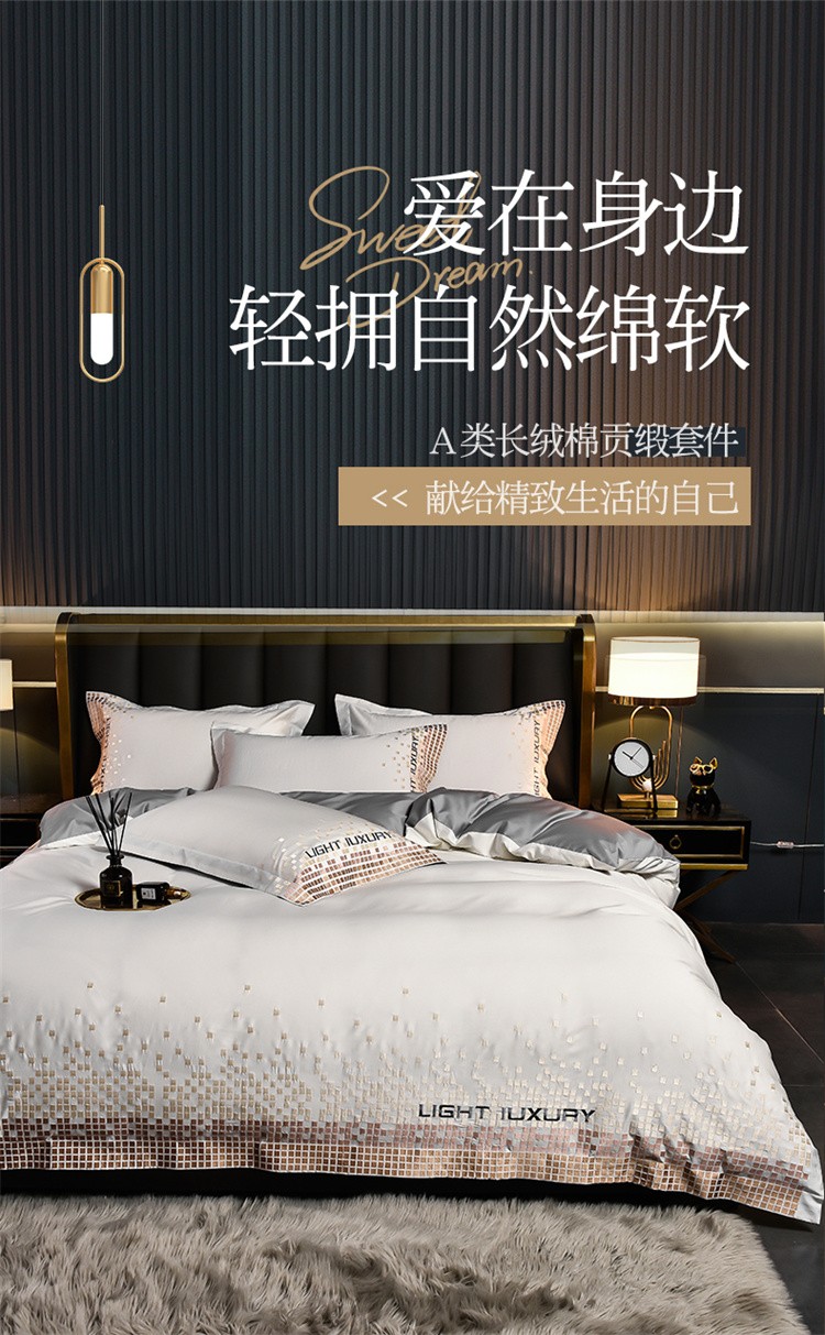 当前位置: 91家纺网 > 商品网购 > 床品套件 > 四件套 > 长绒棉四件套 > 米奈 2024新款A类100S长绒棉刺绣四件套有质检报告-戴纳象牙白