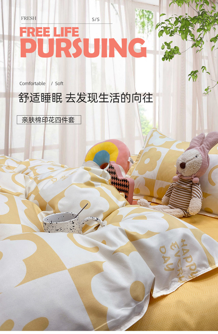 宏源家纺 2022新款亲肤棉印花四件套 黄花情