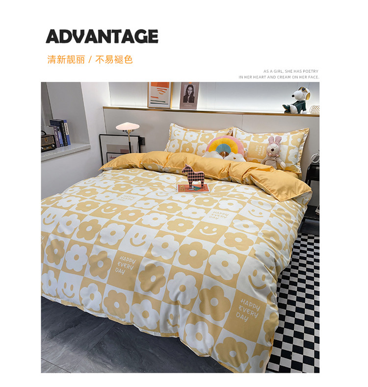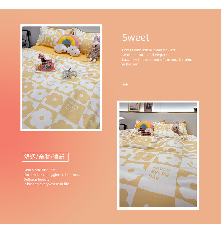 商品名称:宏源家纺 2022新款亲肤棉印花四件套 黄花情