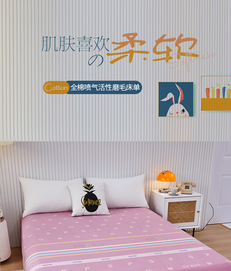 杜先生 2023新款全棉加厚喷气活性磨毛直角床单 名爵世家-豆沙