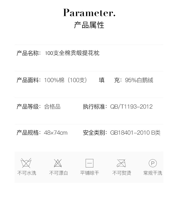 商品名称:羽仙子 2023新款100支贡缎提花枕芯三层白色