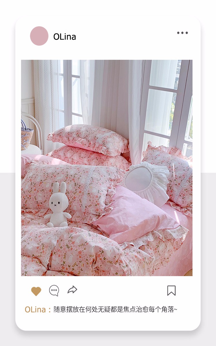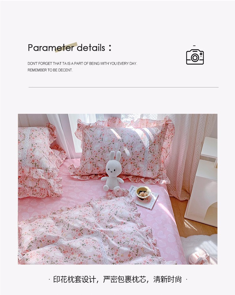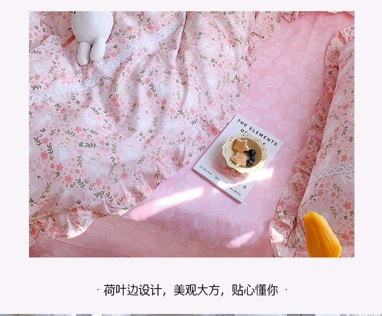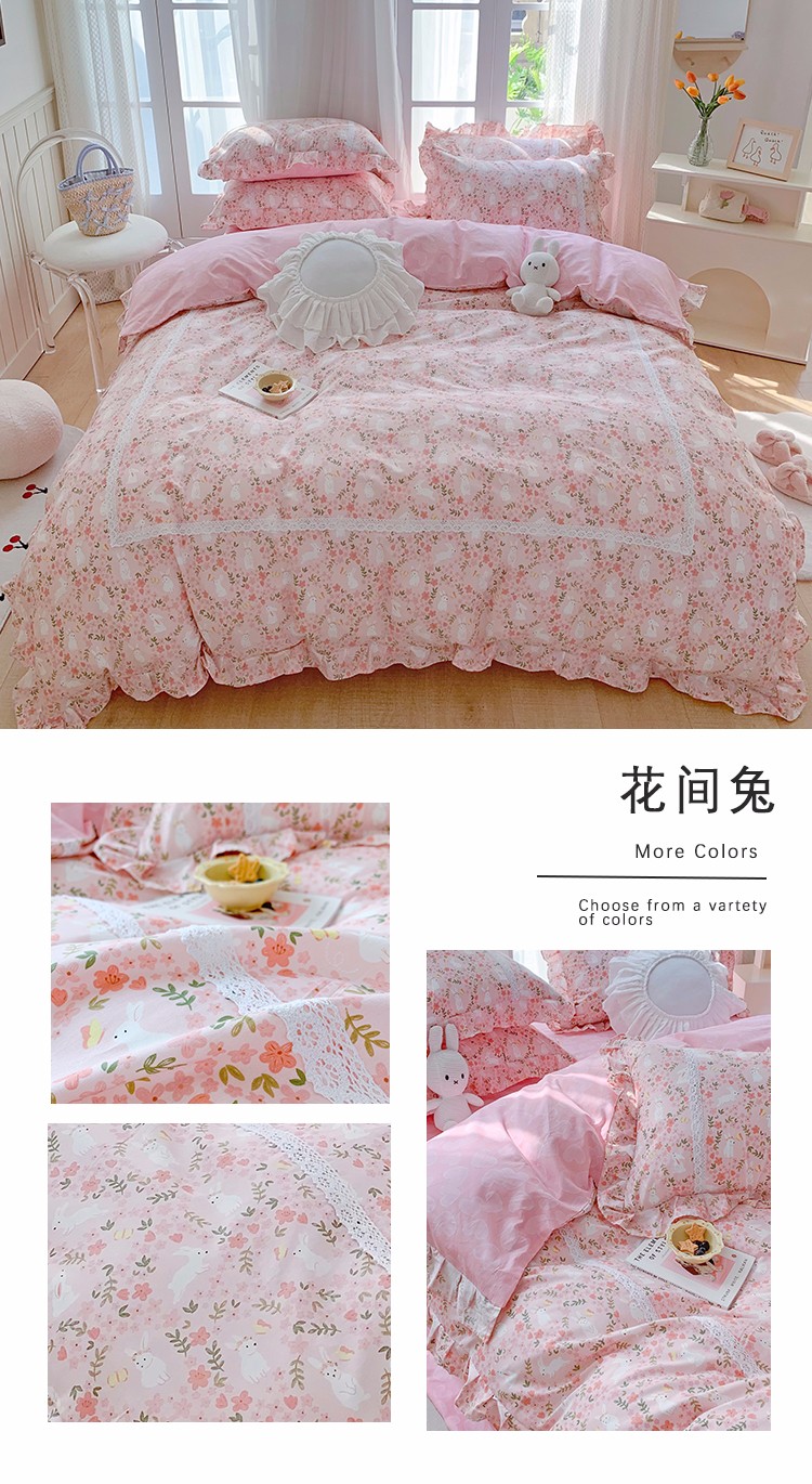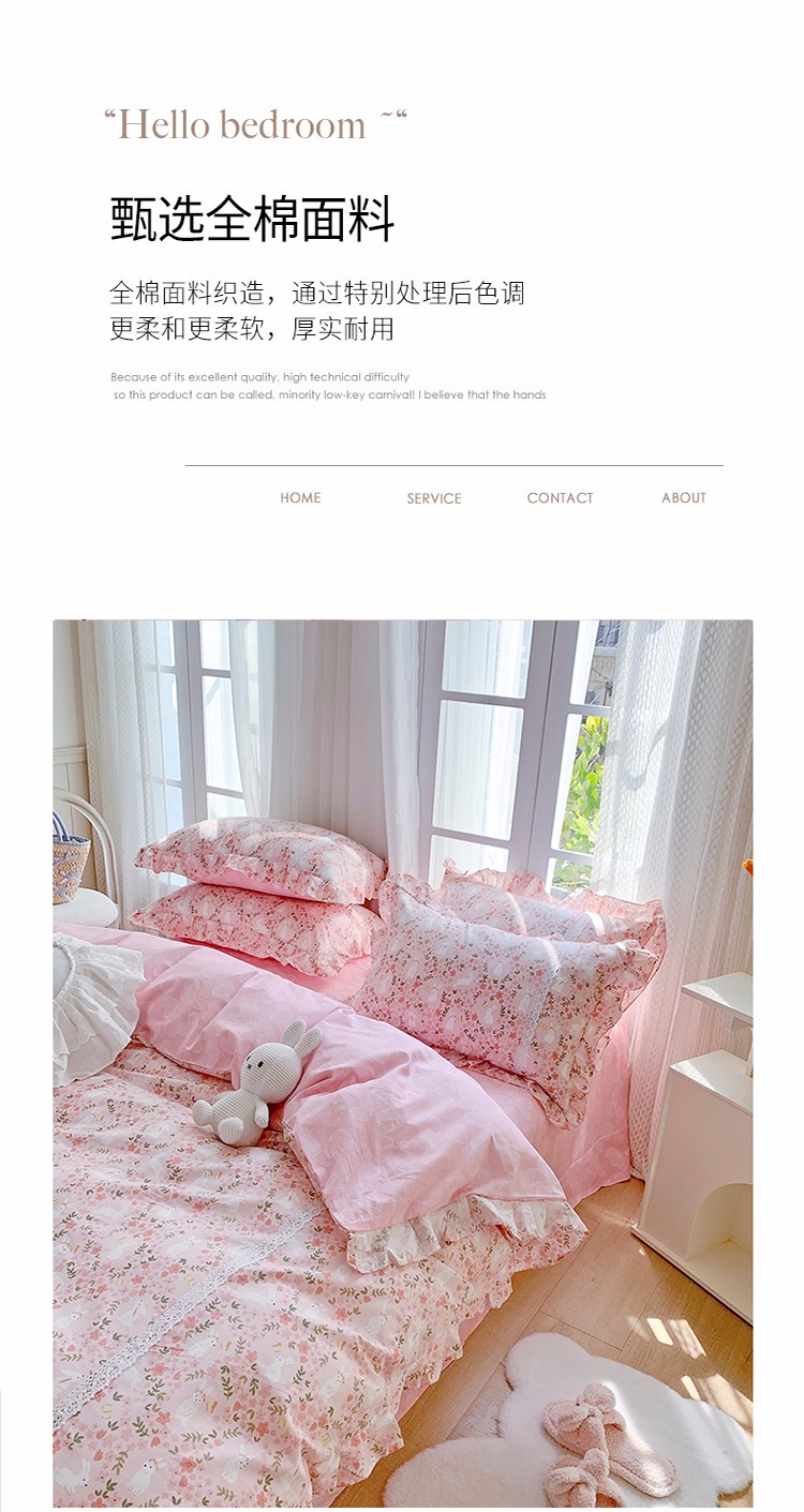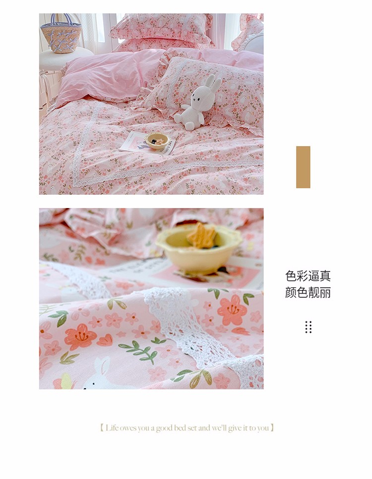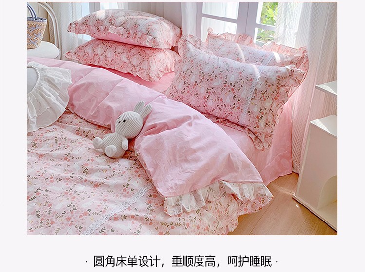 商品名称:眠屿 2022新款全棉小碎花法式花边四件套 花间兔