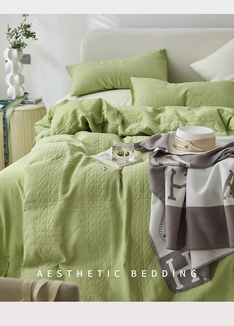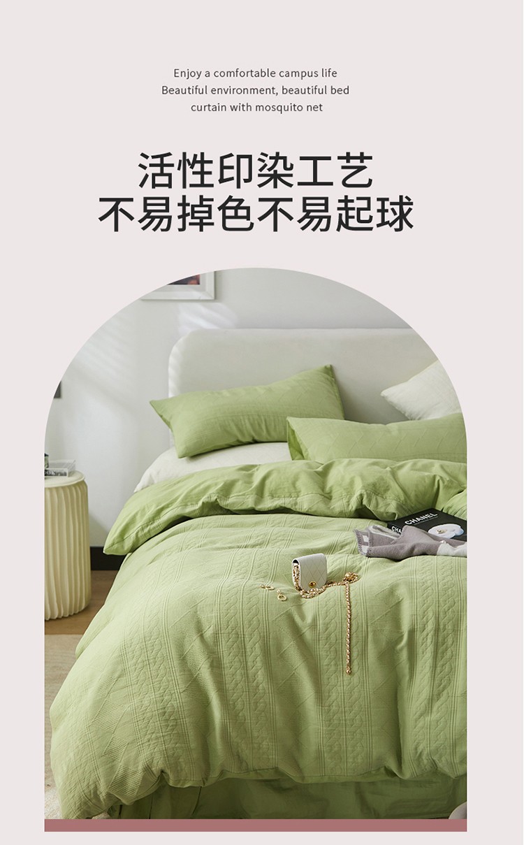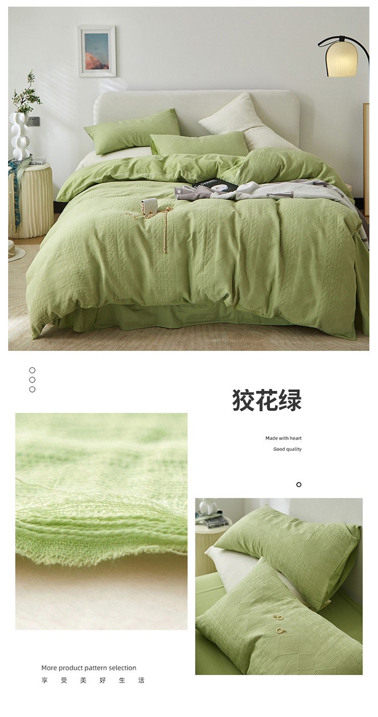 (总)名品优仓2023款水洗棉三层纱提花四件套-狡花系列,狡花白,狡花豆粉,狡花黄,狡花蓝色,狡花绿,狡花少女粉
