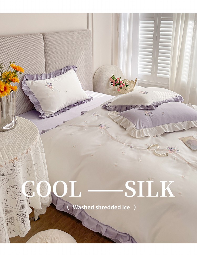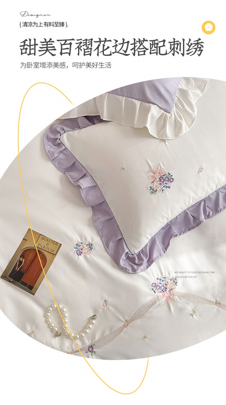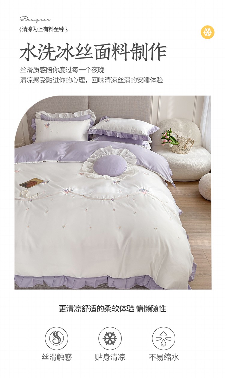 优悦 2022新款花边款冰丝刺绣四件套 花悦白+紫