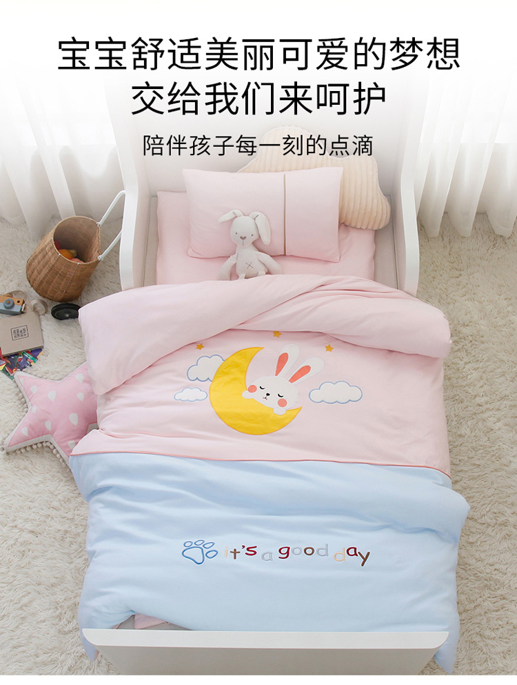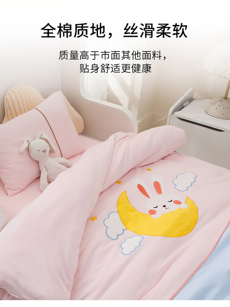 商品名称:喜多兔 2022新款全棉针织三件套床品套件-神奇伙伴 粉色睡觉兔