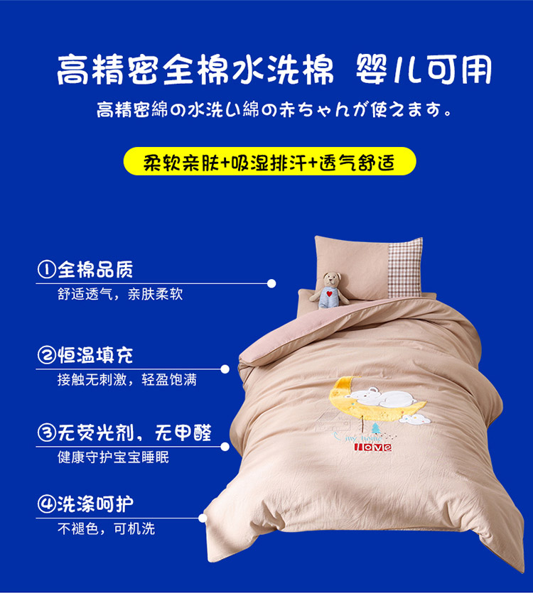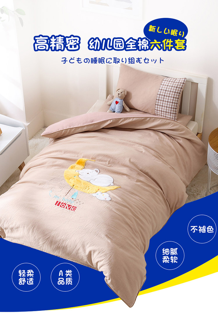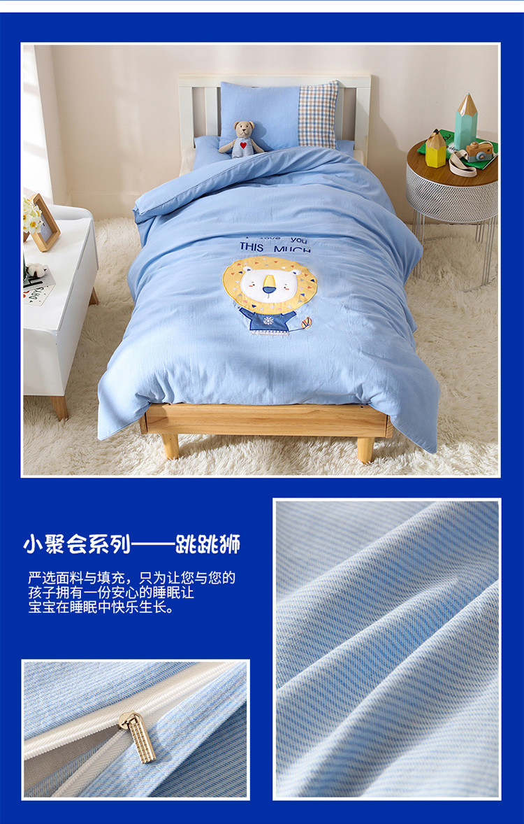 (总)喜多兔儿童家纺 2025新款小美好13372纯棉绣花幼儿园被子三件套多件套,组合图仅供展示,粉色美好小猫咪,粉色美好小兔子,黄色美好卡皮巴拉,黄色美好小狮子,蓝色美好独角兽,蓝色美好小熊,绿色美好小恐龙,绿色美好小青蛙