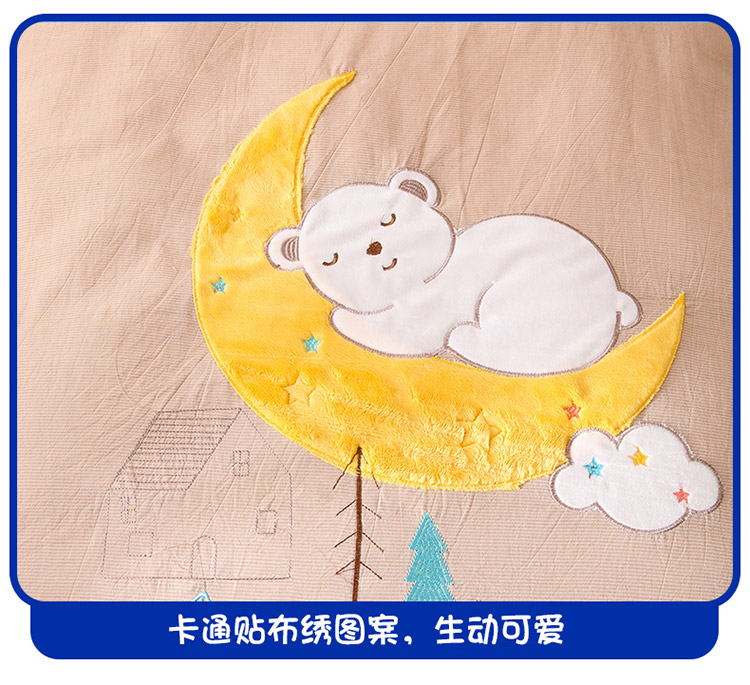 (总)喜多兔儿童家纺 2025春夏新款小软萌贴布绣纱布被,粉色软萌小兔,卡其色软萌小熊,蓝色软萌小象,绿色软萌恐龙,组合图仅供展示