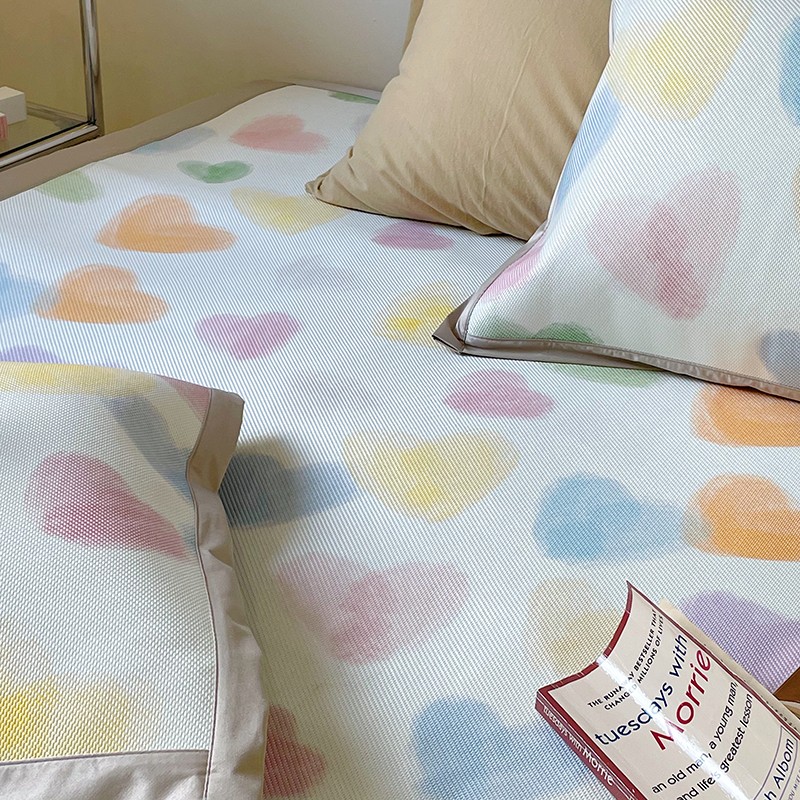 昔可 2022新款900D数码印花冰藤养生席 彩色油画爱心