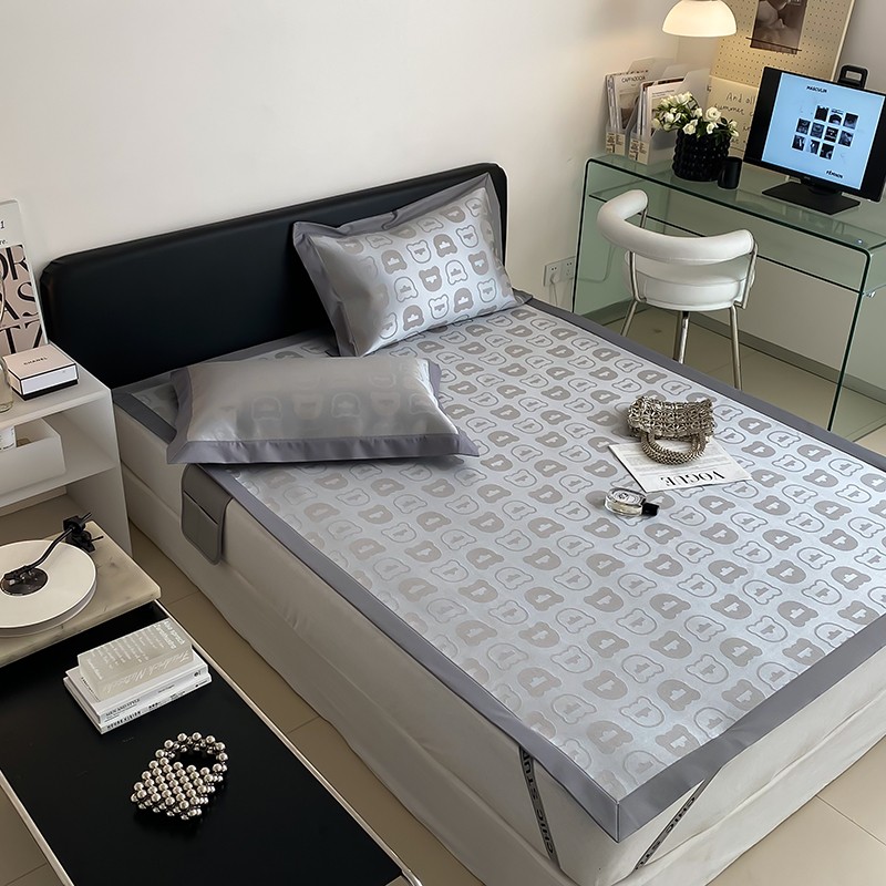 昔可 2022新款900D水洗提花养生凉席 酷酷熊-咖