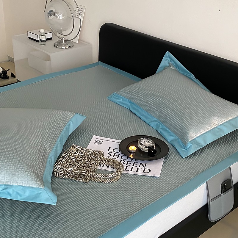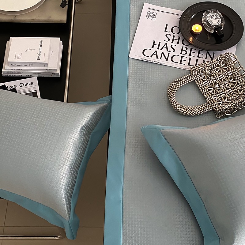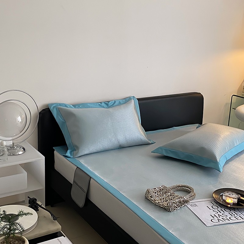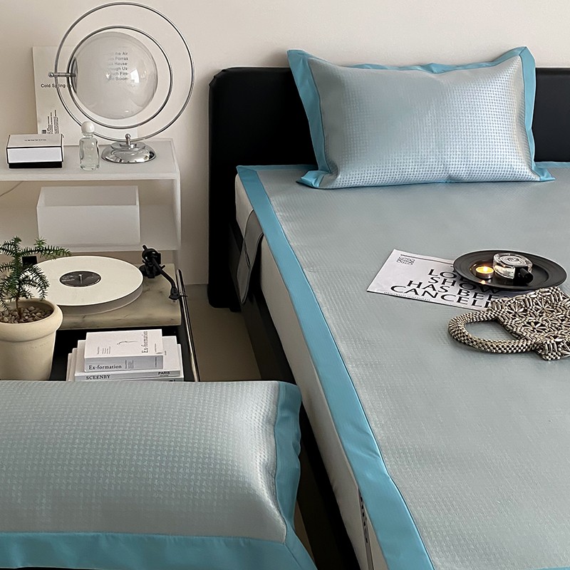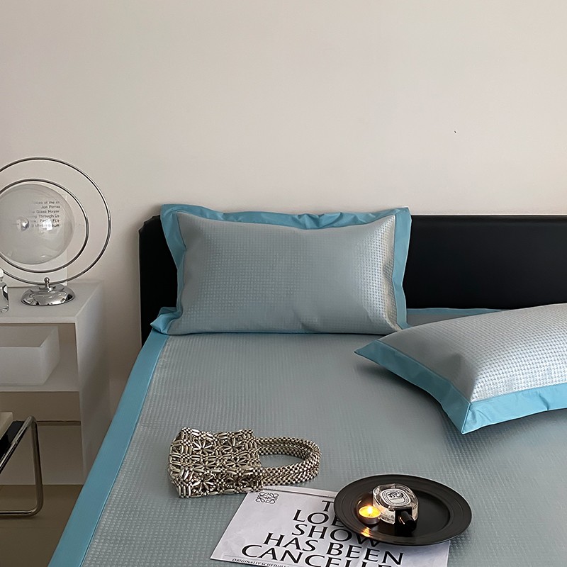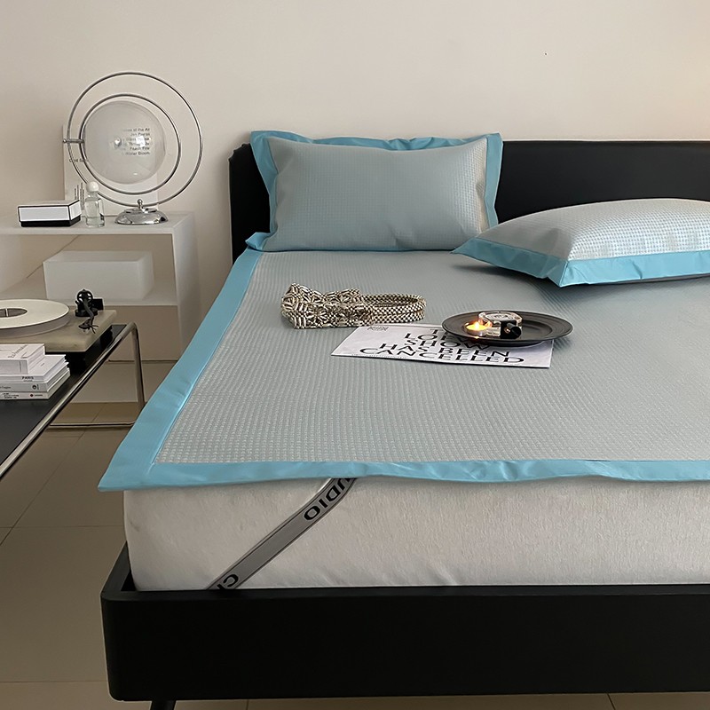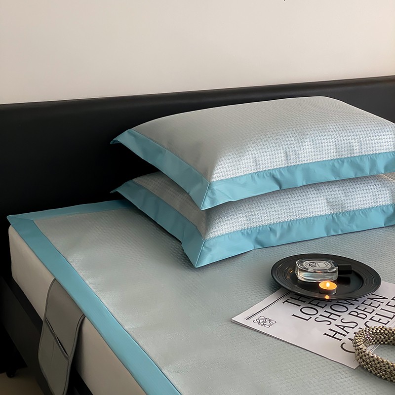 商品名称:昔可 2022新款900D水洗提花养生凉席 小千鸟格-蓝