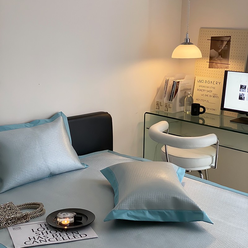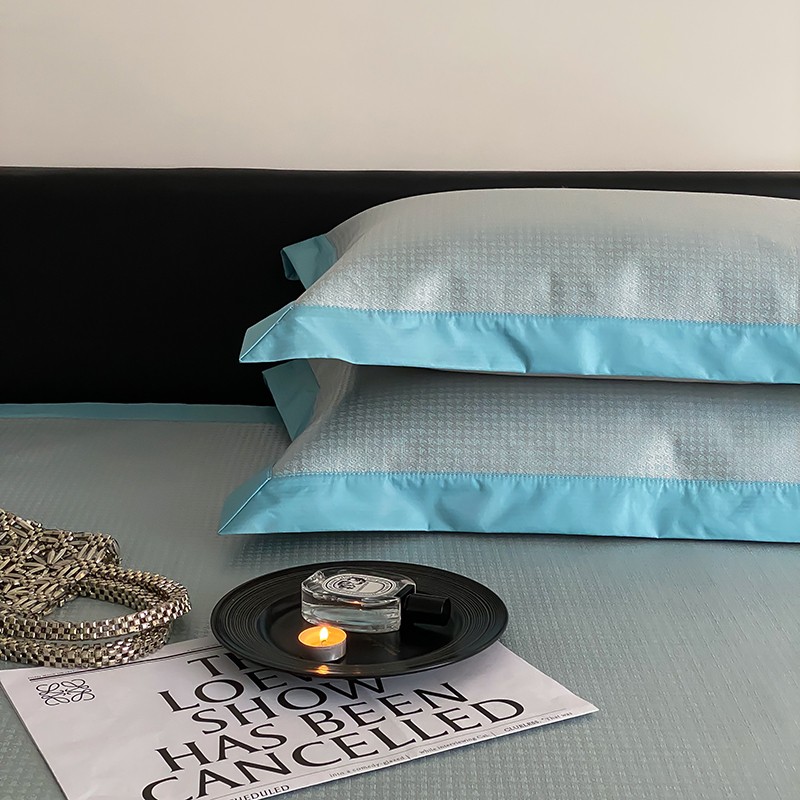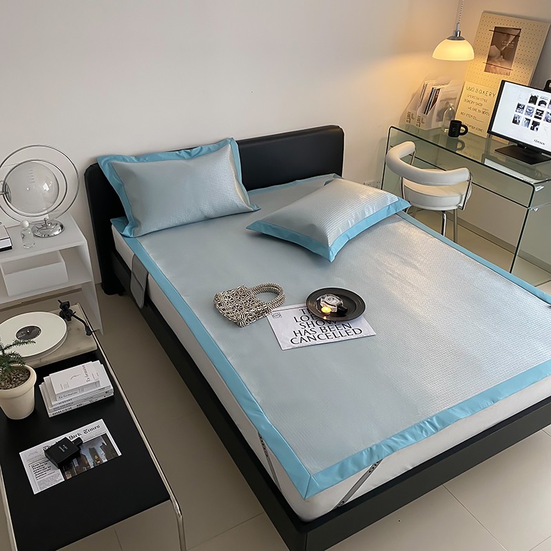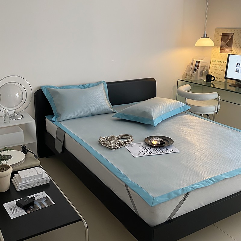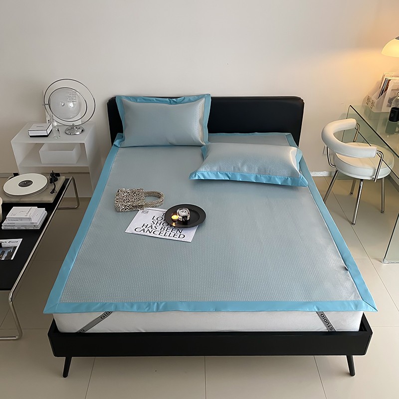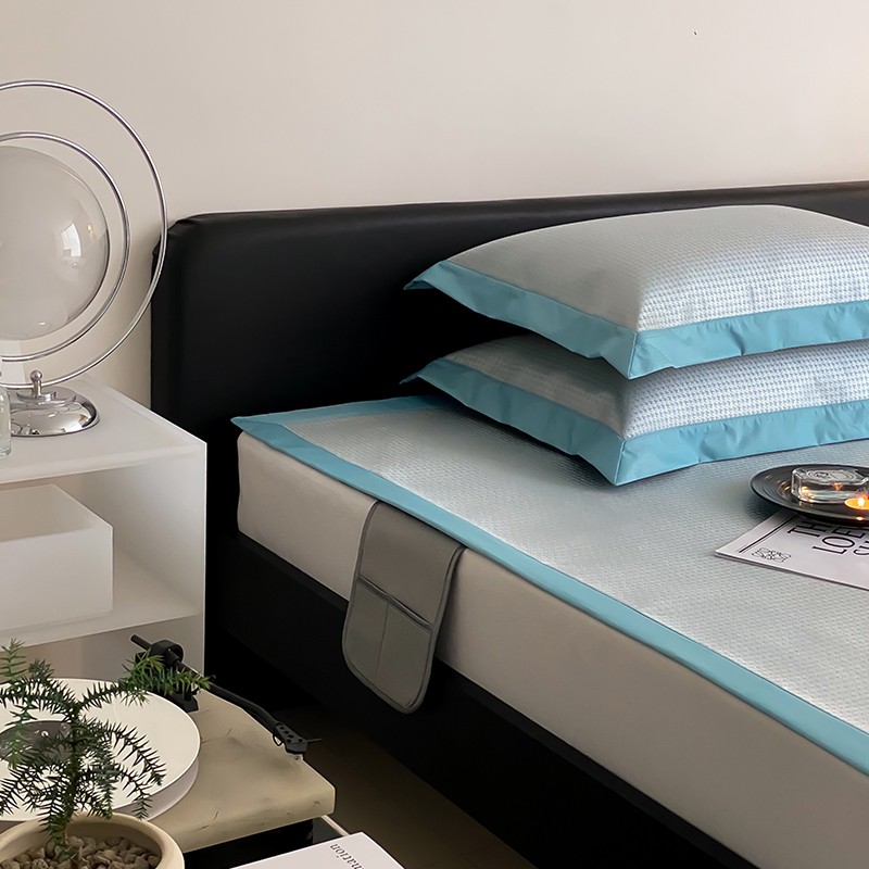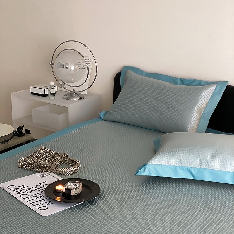 商品名称:昔可 2022新款900D水洗提花养生凉席 小千鸟格-蓝