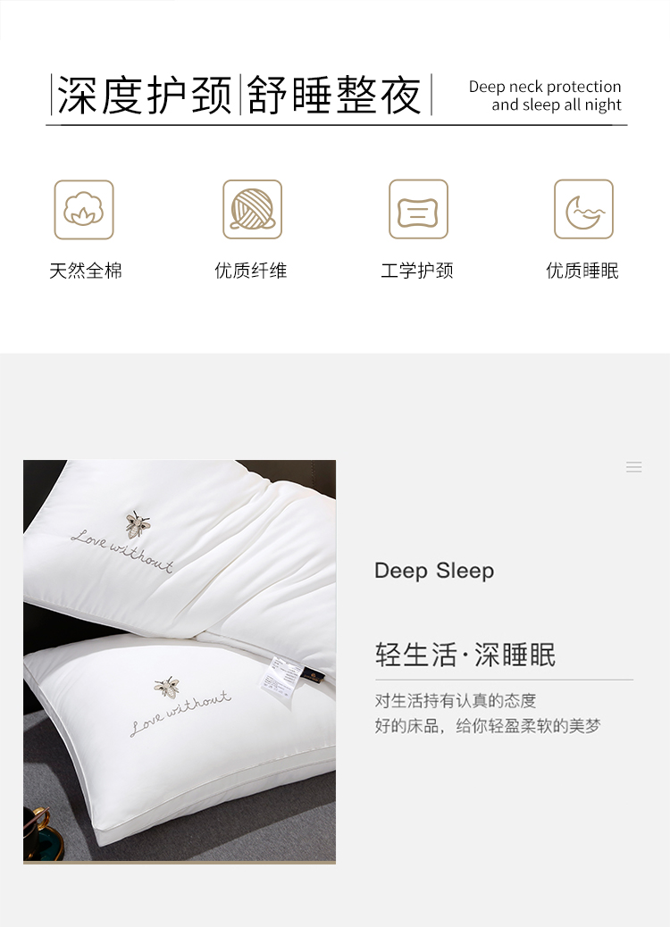 当前位置: 91家纺网 > 商品网购 > 枕头/枕芯/保健枕/颈椎枕 > 普通枕芯 > 珍贝 2024新全棉刺绣酒店枕芯枕头护颈枕-蜜蜂枕 白色