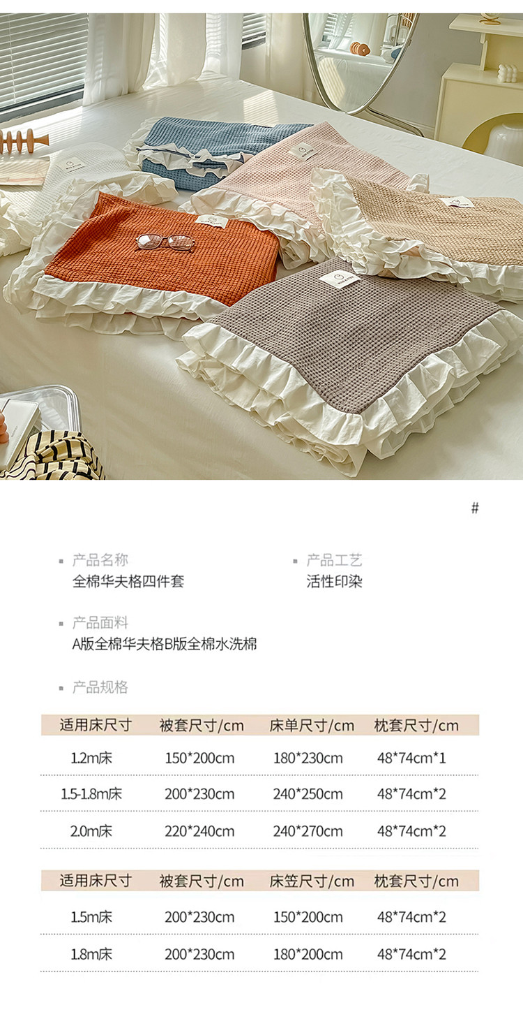 (总)雅萱 2023新款华夫格四件套,焦糖-花边款,米驼-花边款,抹茶绿-花边款,奶油白-花边款,柔粉-花边款,深灰-花边款,雾蓝-花边款,米驼-普通款,抹茶绿-普通款,奶油白-普通款,柔粉-普通款,深灰-普通款,雾蓝-普通款