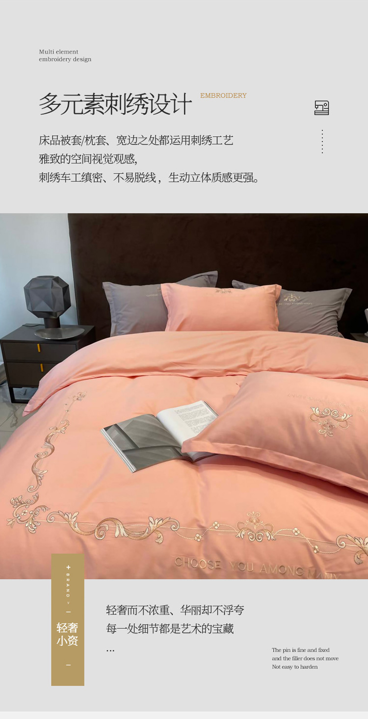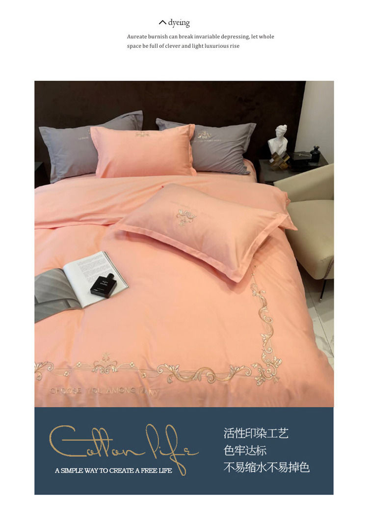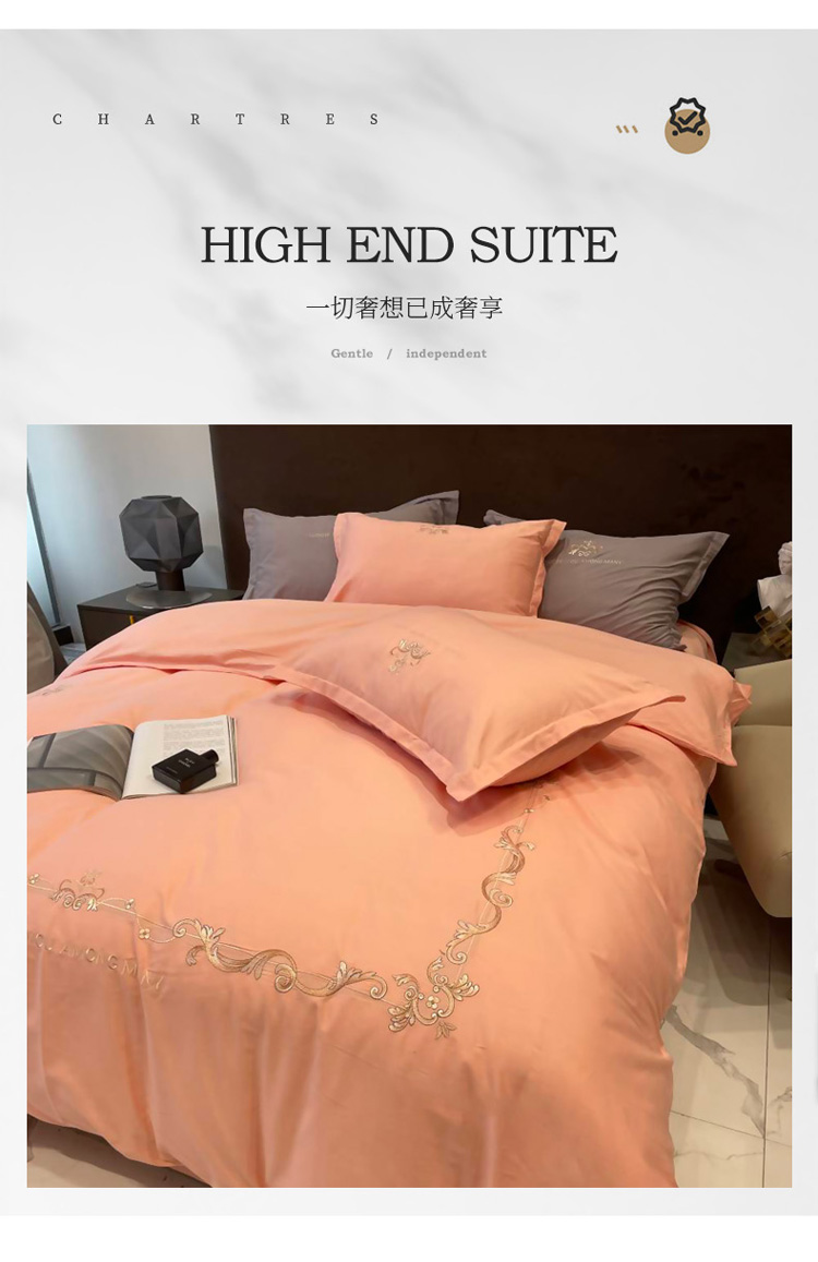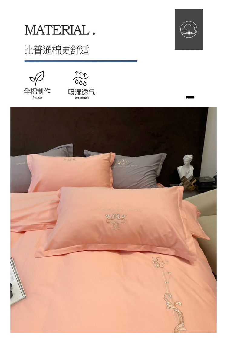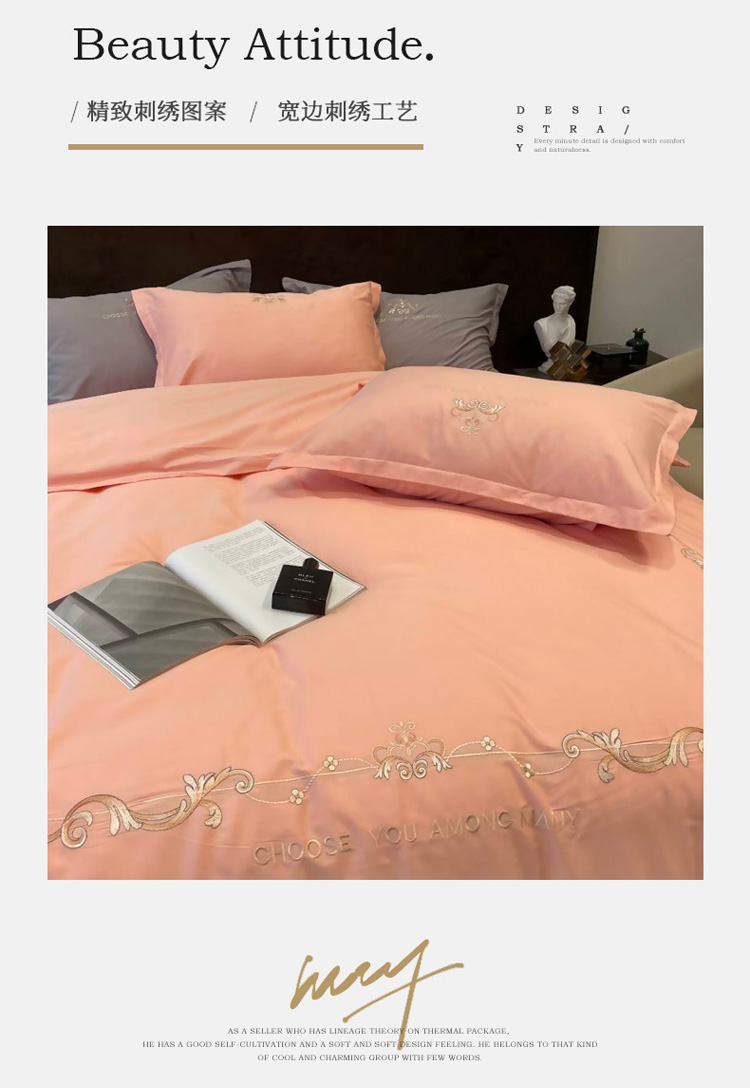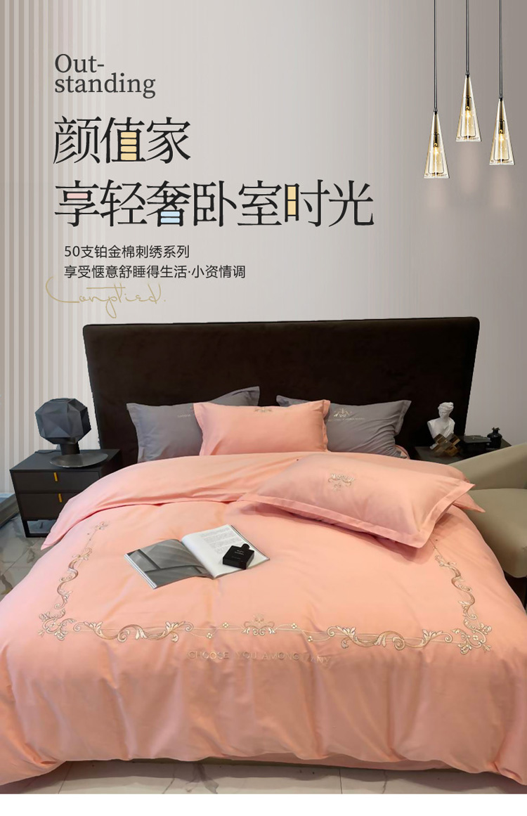 商品名称:慕尚 2025新款纯棉50支铂金棉刺绣四件套 铂金玉