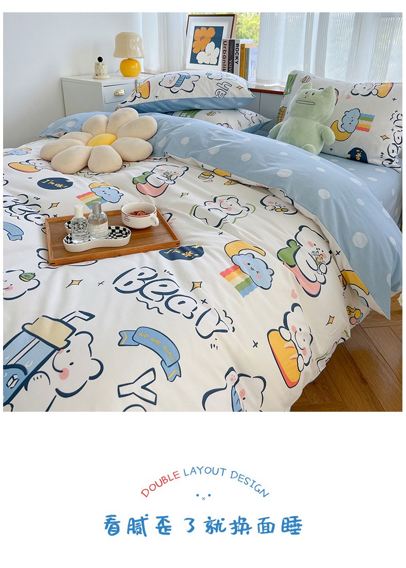 (总)麦伦家居 2025秋冬新品多功能床品全棉+豆豆绒四件套卡通小清新系列,迪迪龙,好友鸭,花韵抹茶,浣花,杰克熊,乐园小马,清茶小熊,童趣米,星星小象蓝,云朵腊肠狗,粉色玫瑰,可爱小兔-米黄,木马小熊蓝,拾趣爱宠,星星木马