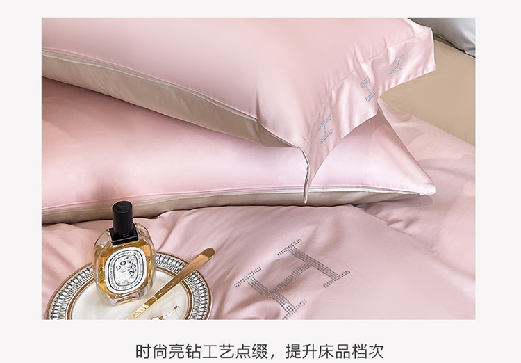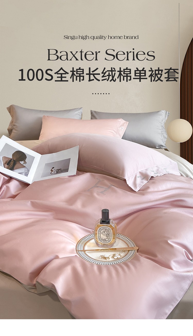 798家纺 2022新款长绒棉贡缎单被套 戴妃粉