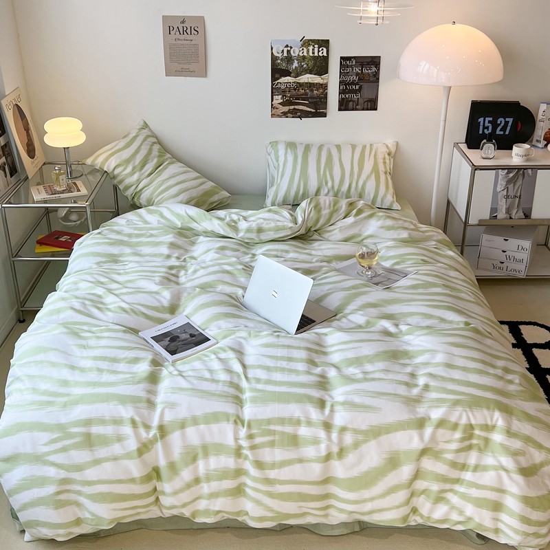(总)昔可 2023新款全棉ins格子混搭系列四件套,ins简约绿格,粉蓝格,开心果格,学院格纹,粉绿格,海盐兰格,黄绿格,夏日蓝条,芝士黄条,紫芋泥芝士格