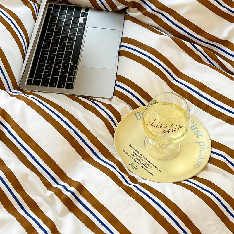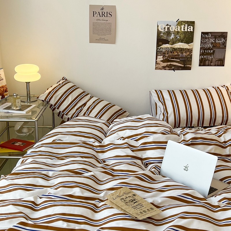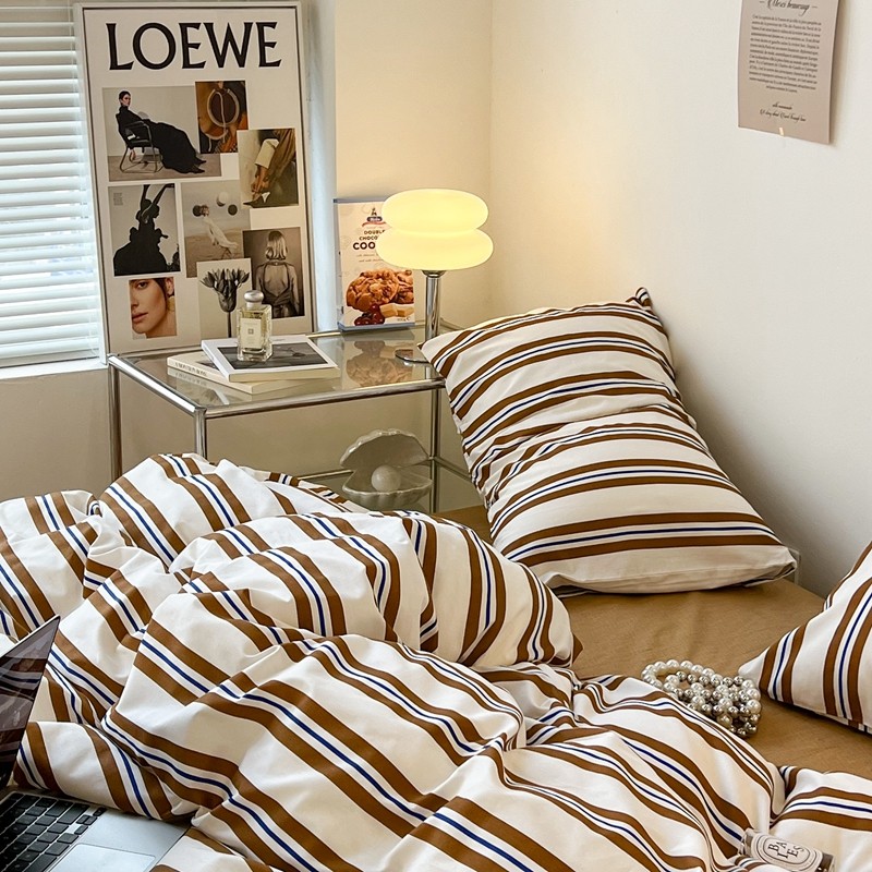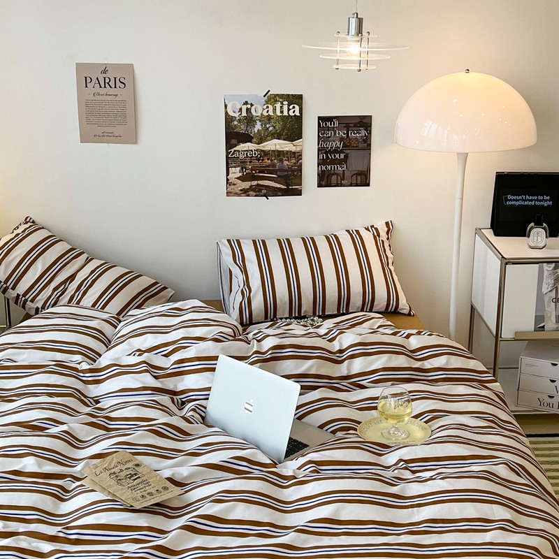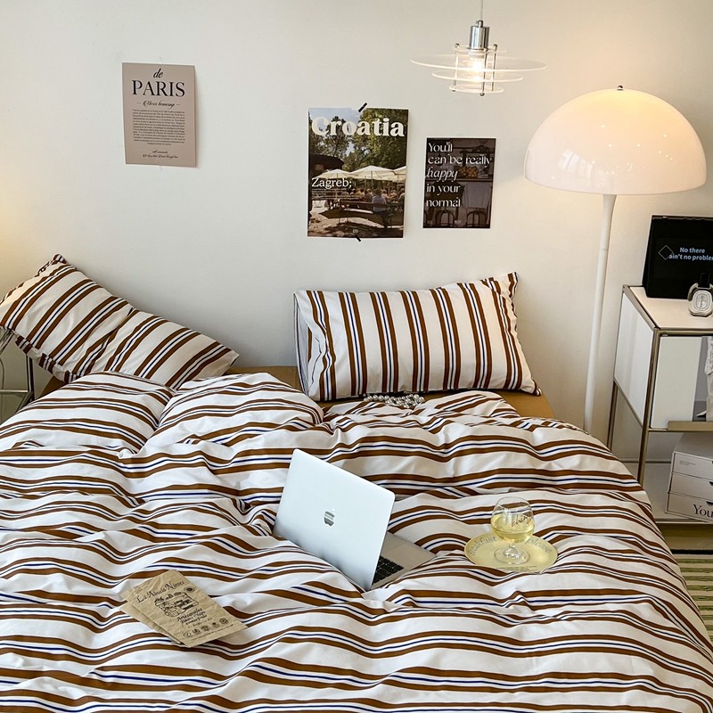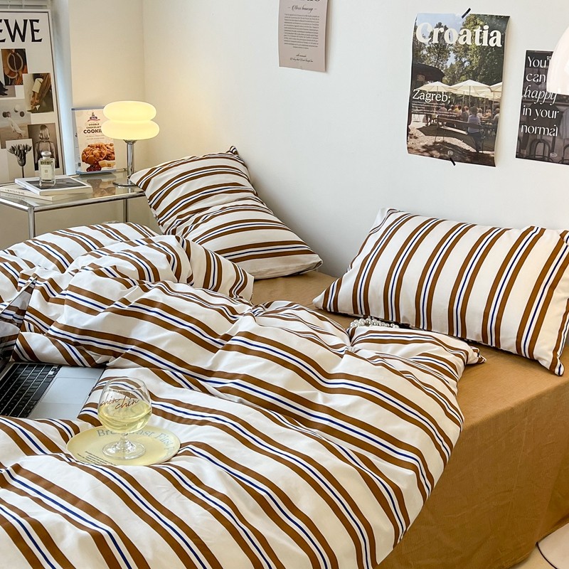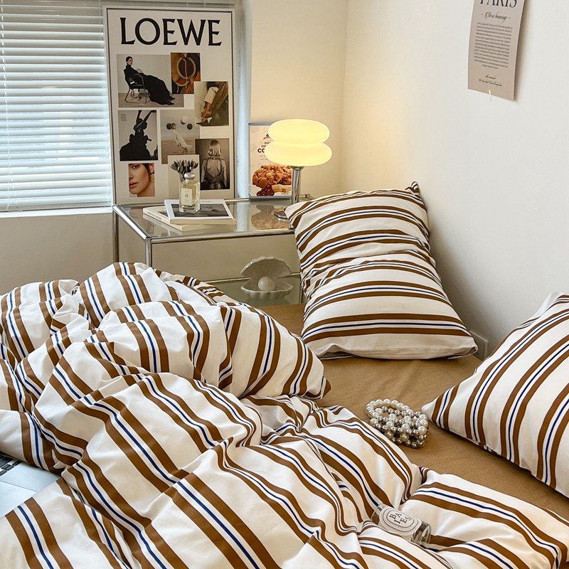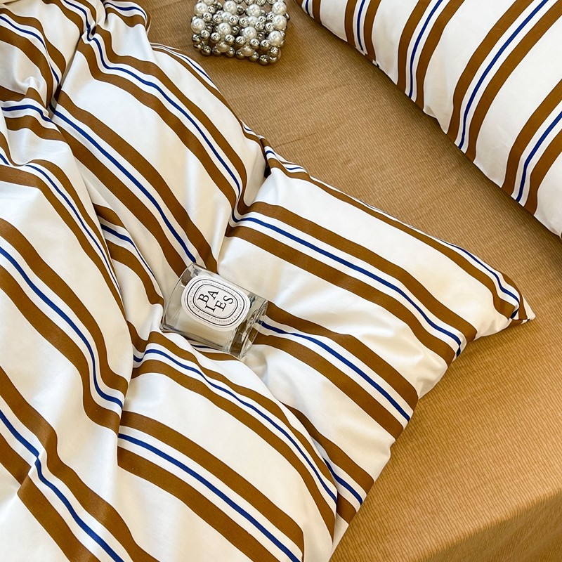 商品名称:昔可家纺2022新款韩风简约条纹全棉套件正常款 棕横条