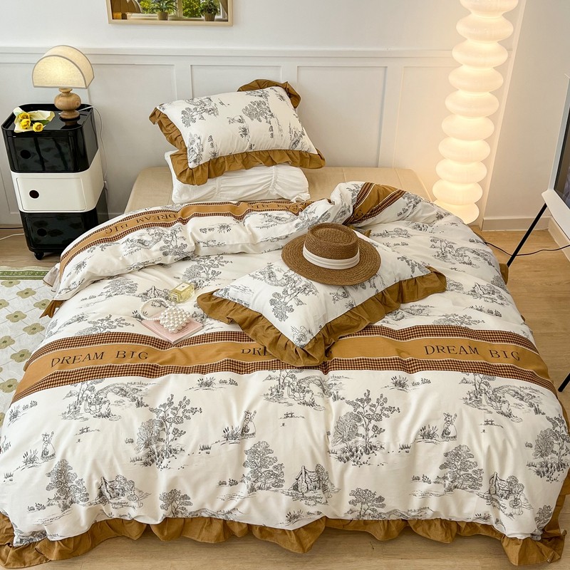 (总)昔可家纺 2024新款印花牛奶绒四件套系列-洛丽塔风,萝莉小兔,小熊烘焙屋,小熊玩偶屋