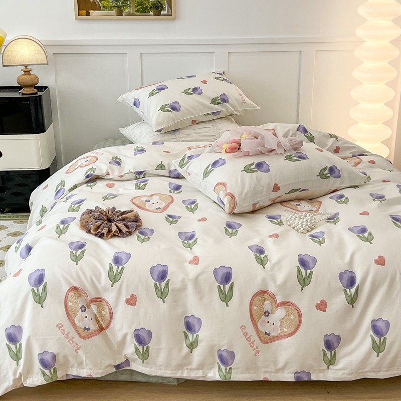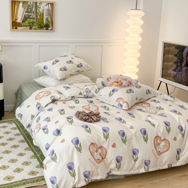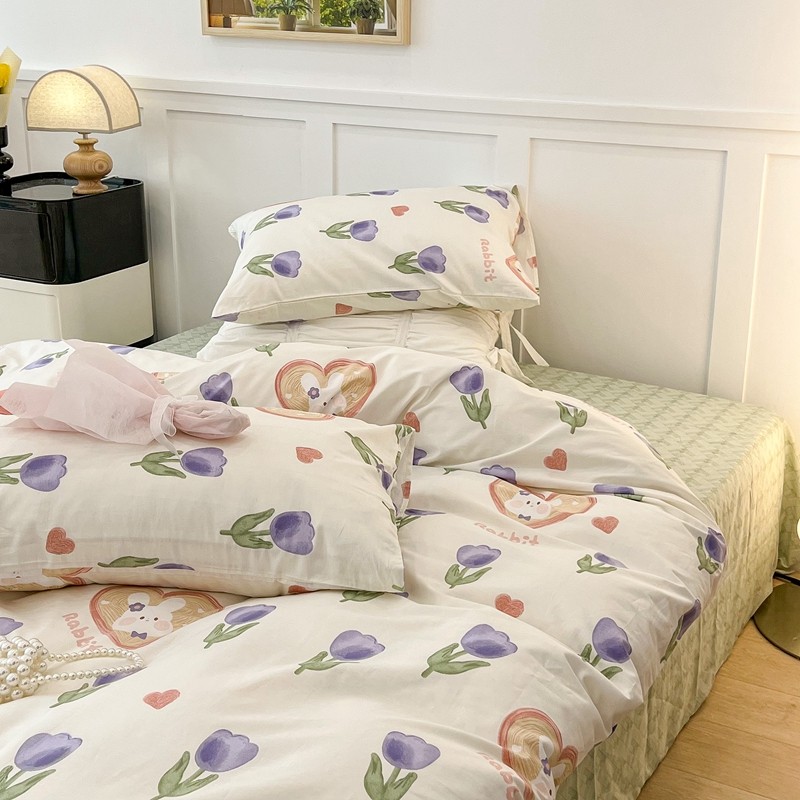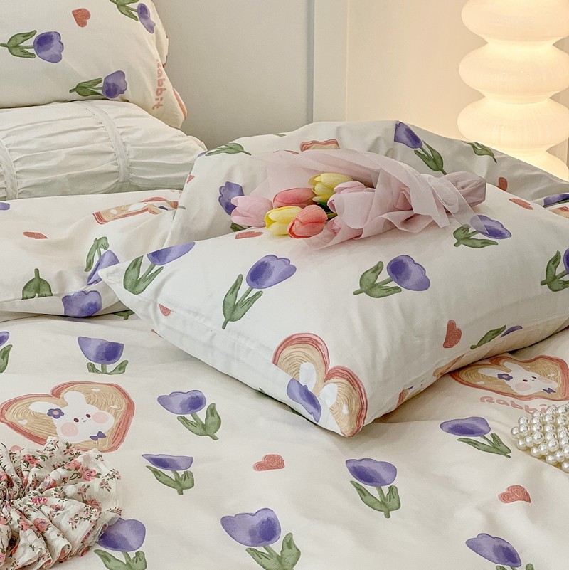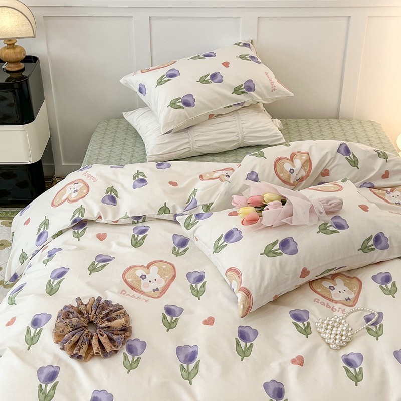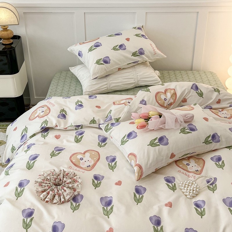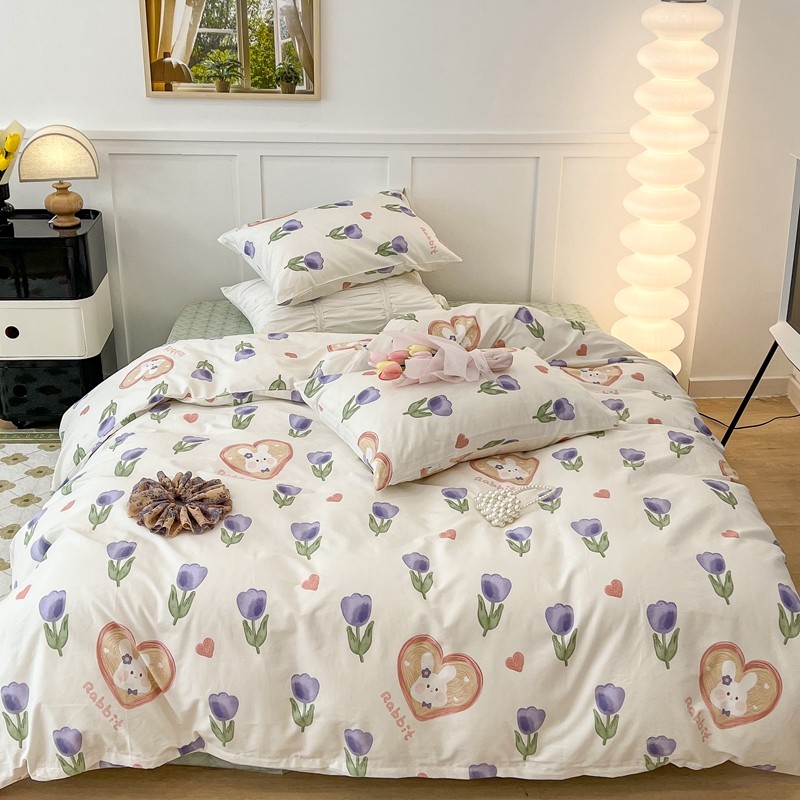 商品名称:昔可家纺2022新款奶呼呼卧室四件套 紫色郁金香小兔