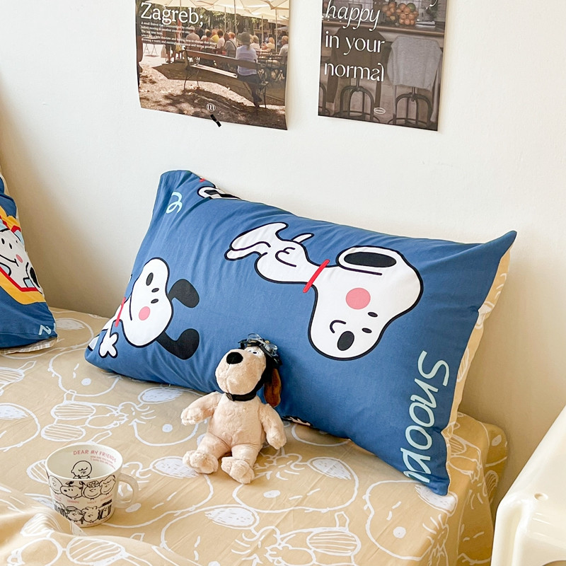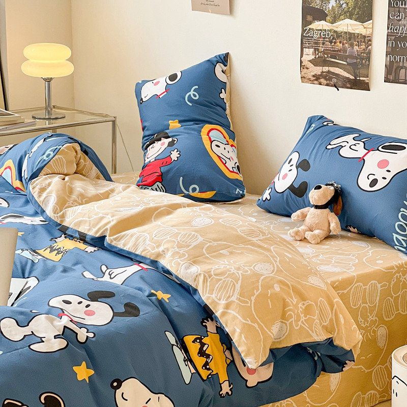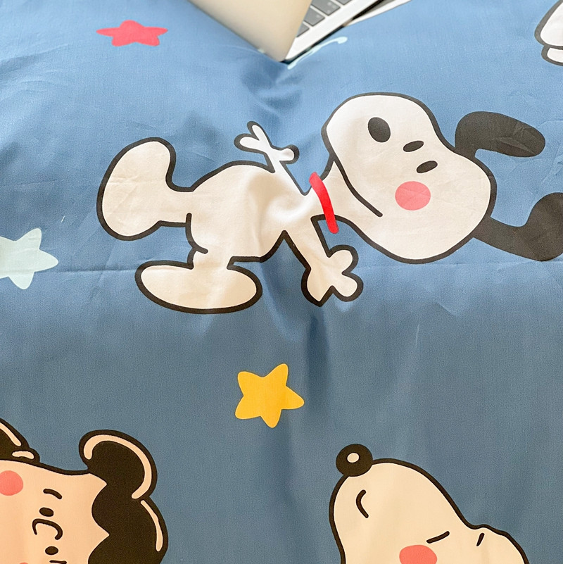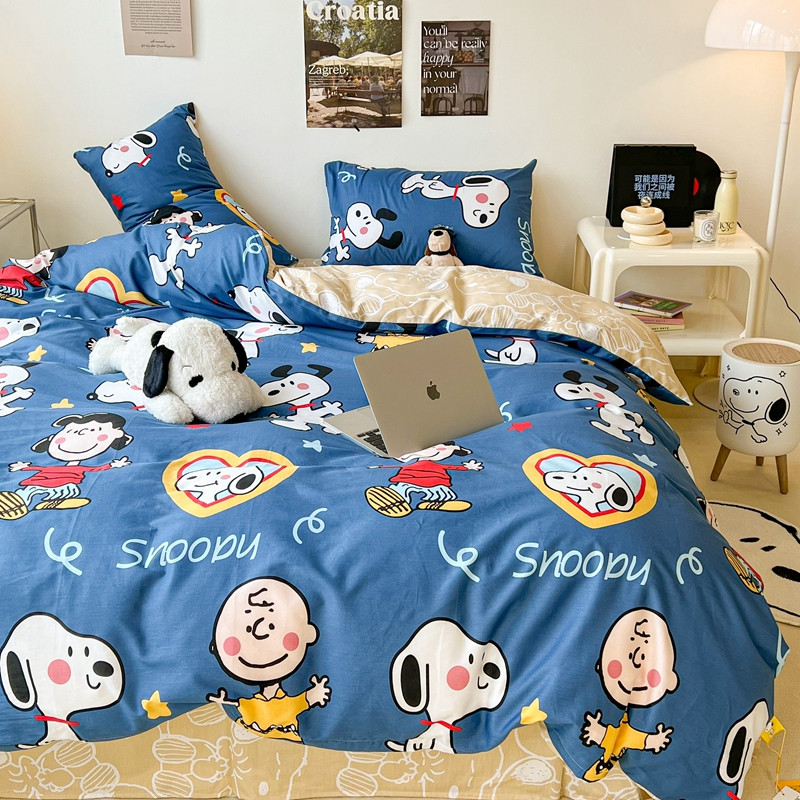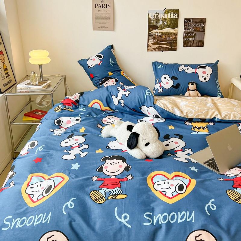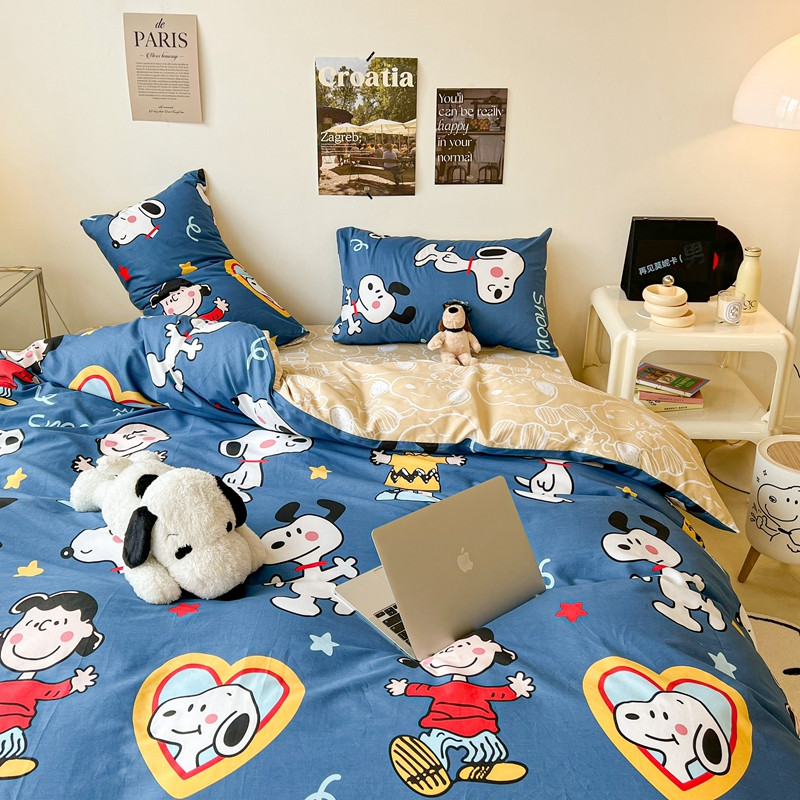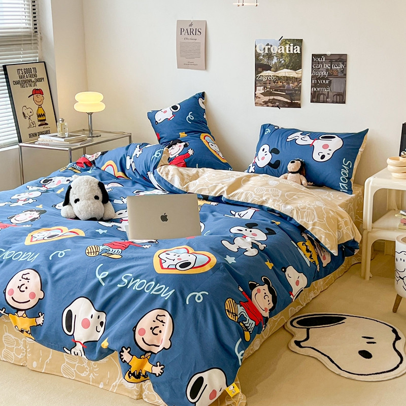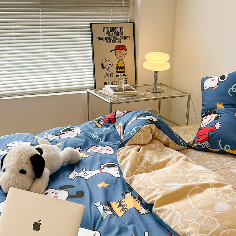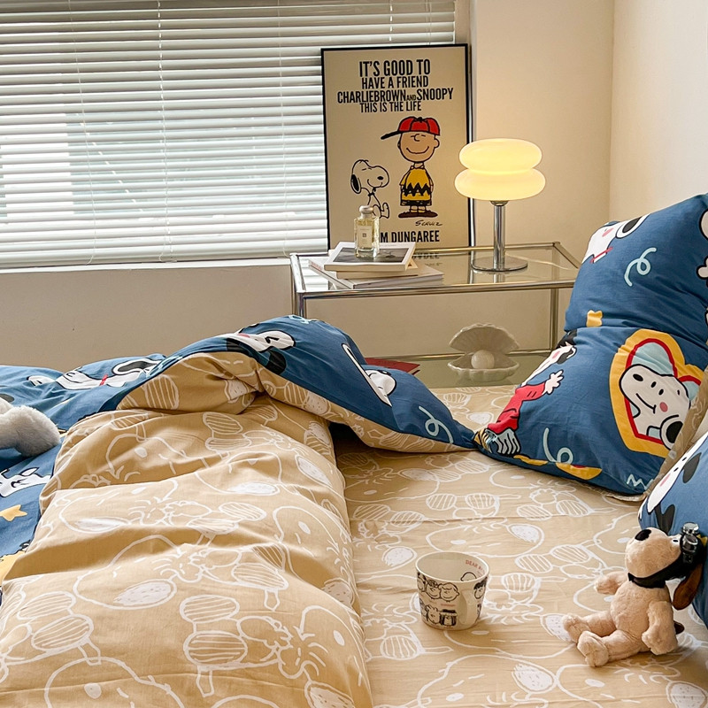 昔可家纺2022新款正版授权史努比全棉四件套 小玩伴蓝