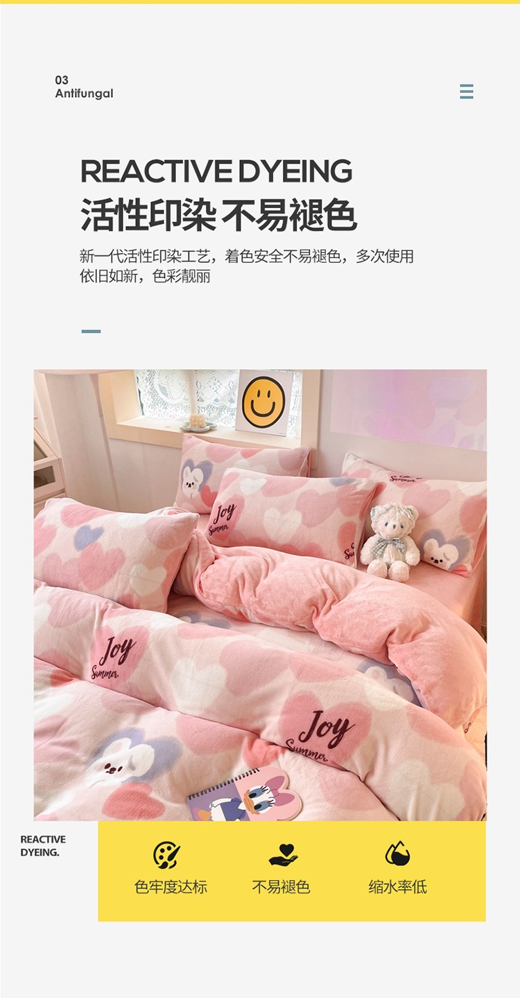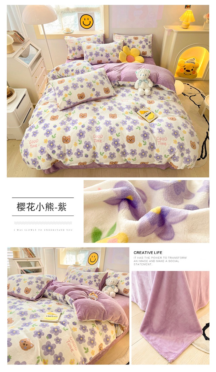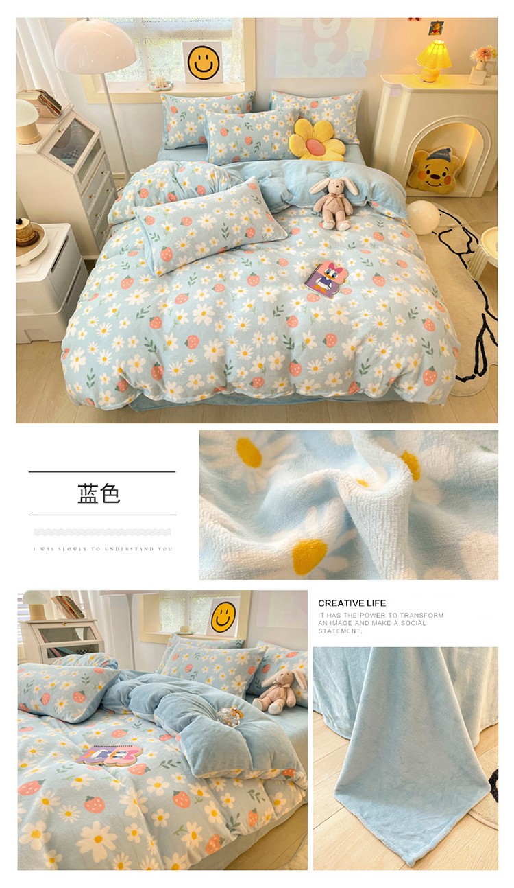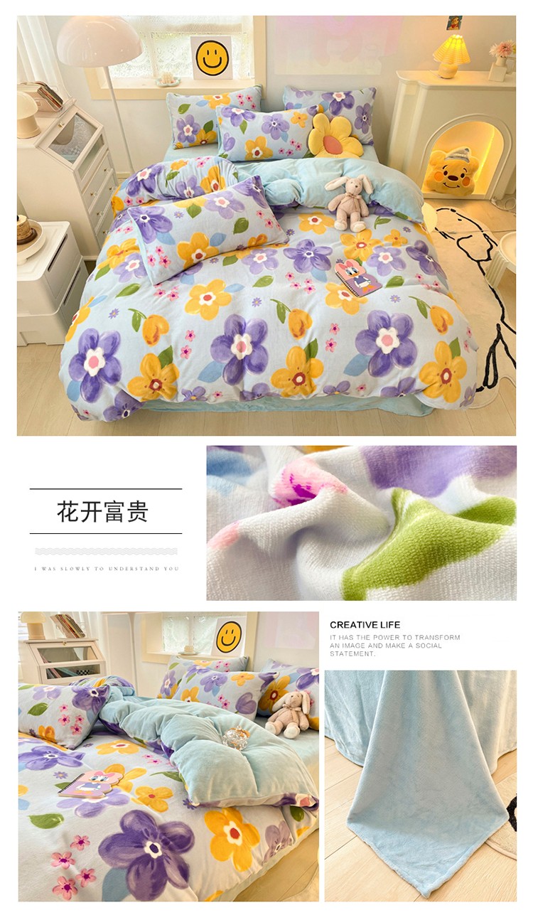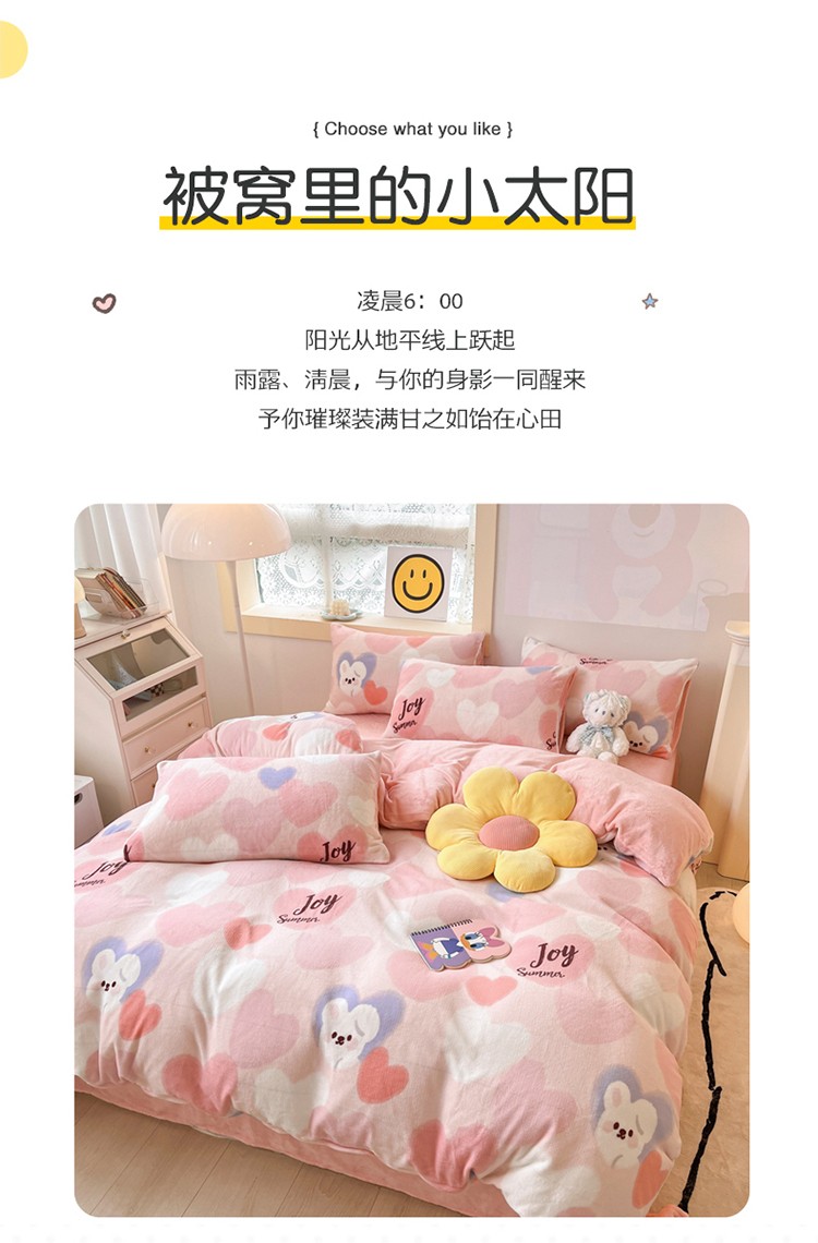 (总)金爱家 2023新款直播印花小清新牛奶绒四件套