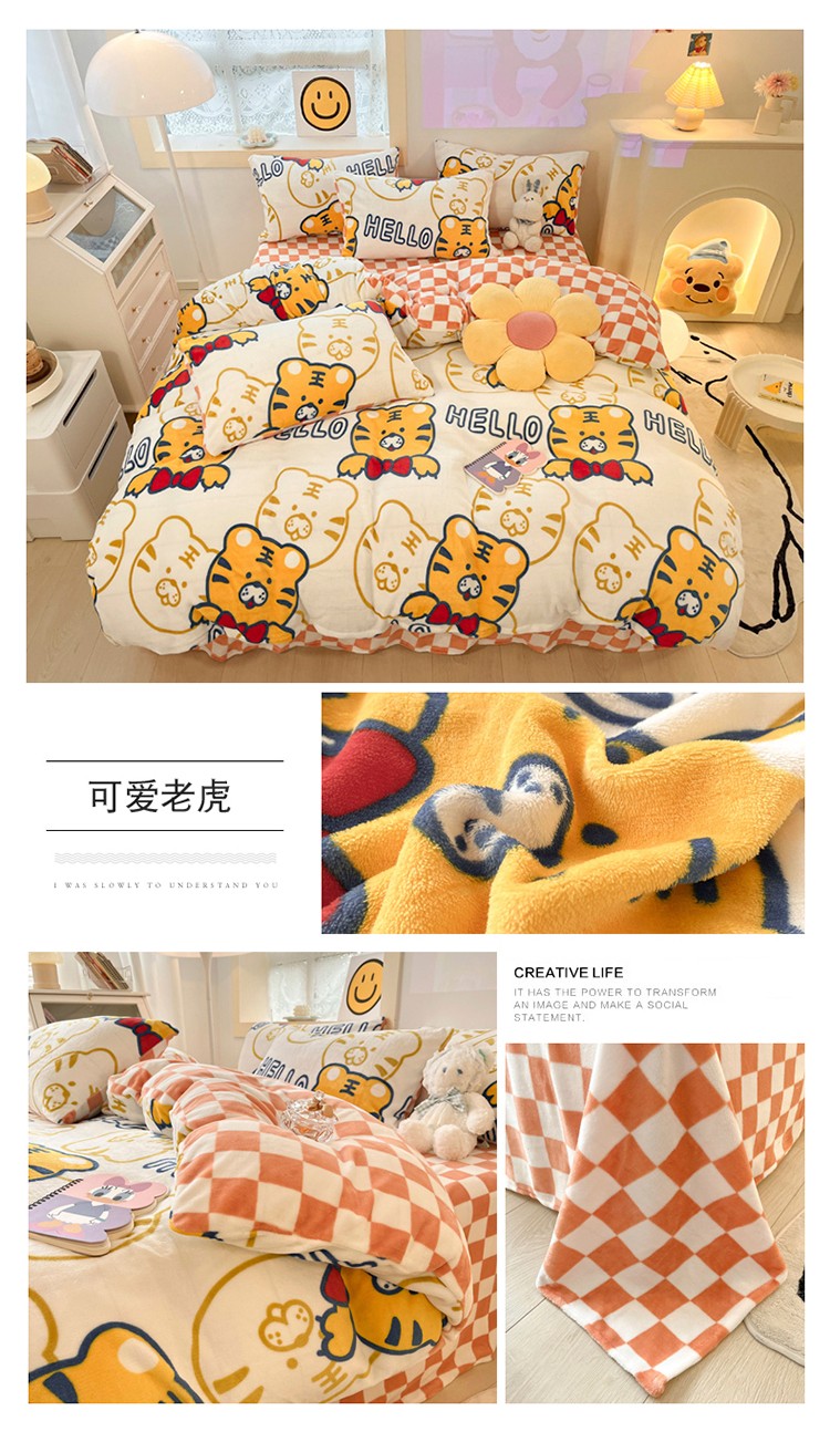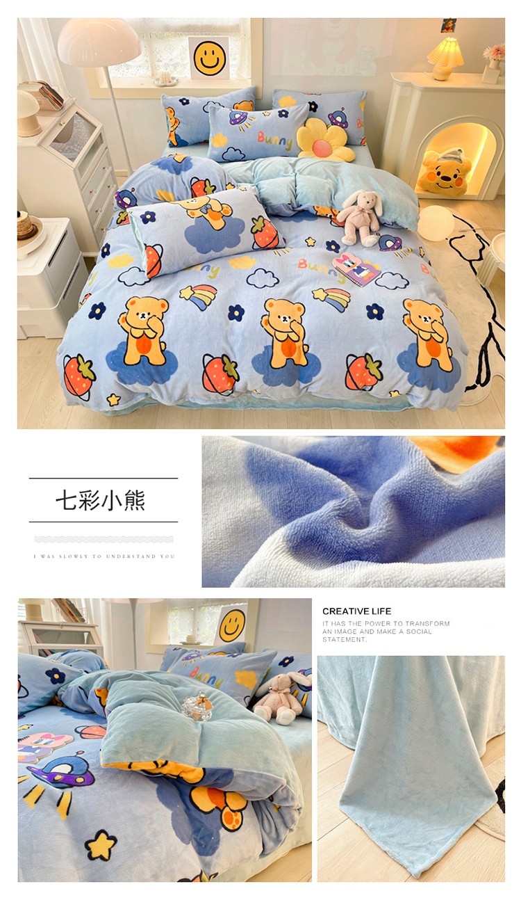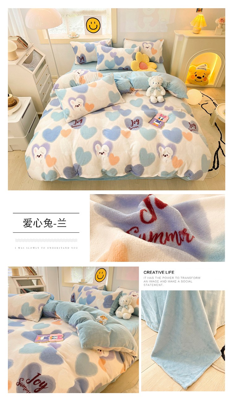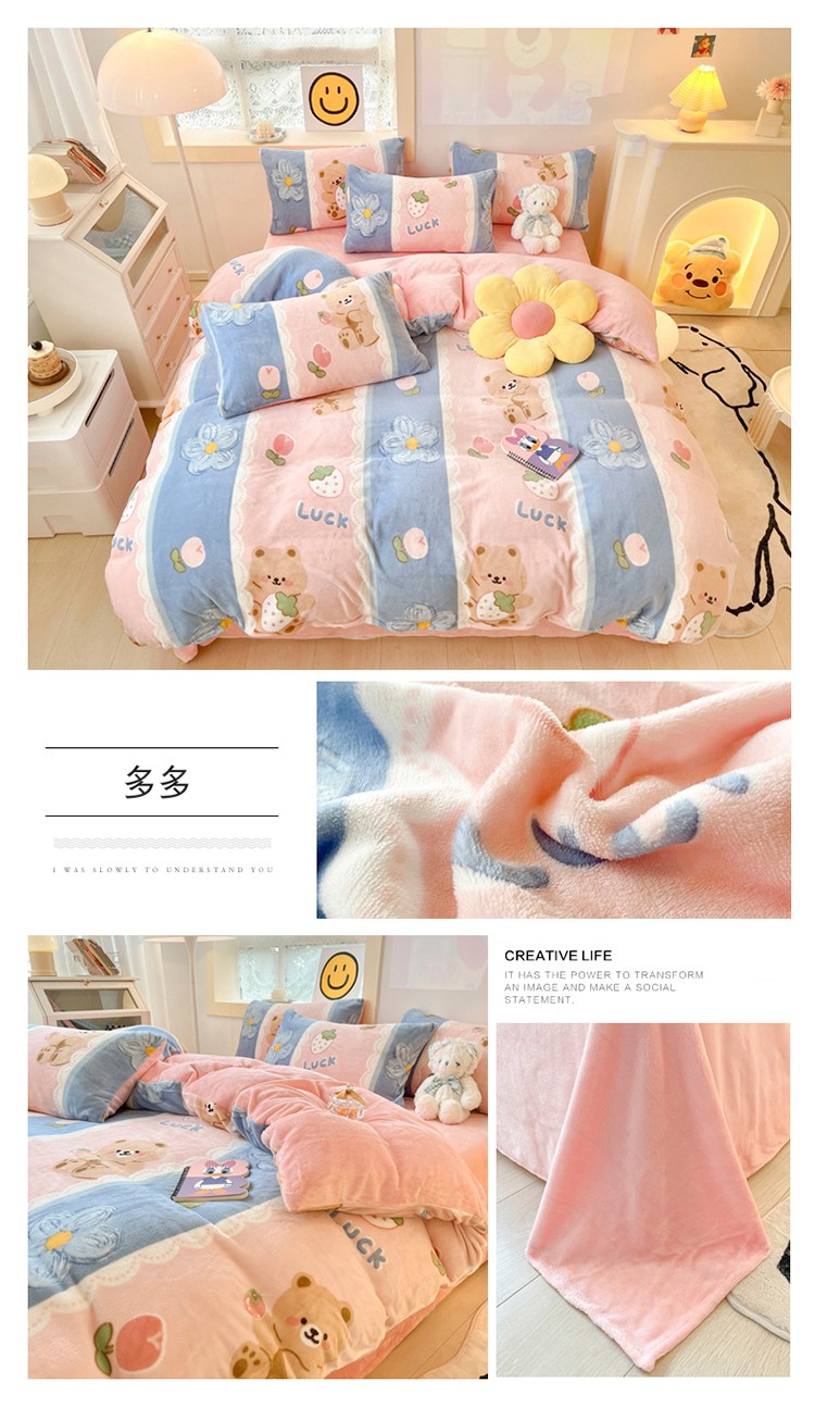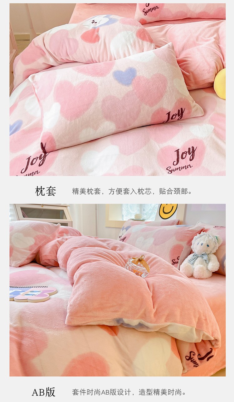 (总)金爱家 2023新款直播印花小清新牛奶绒四件套