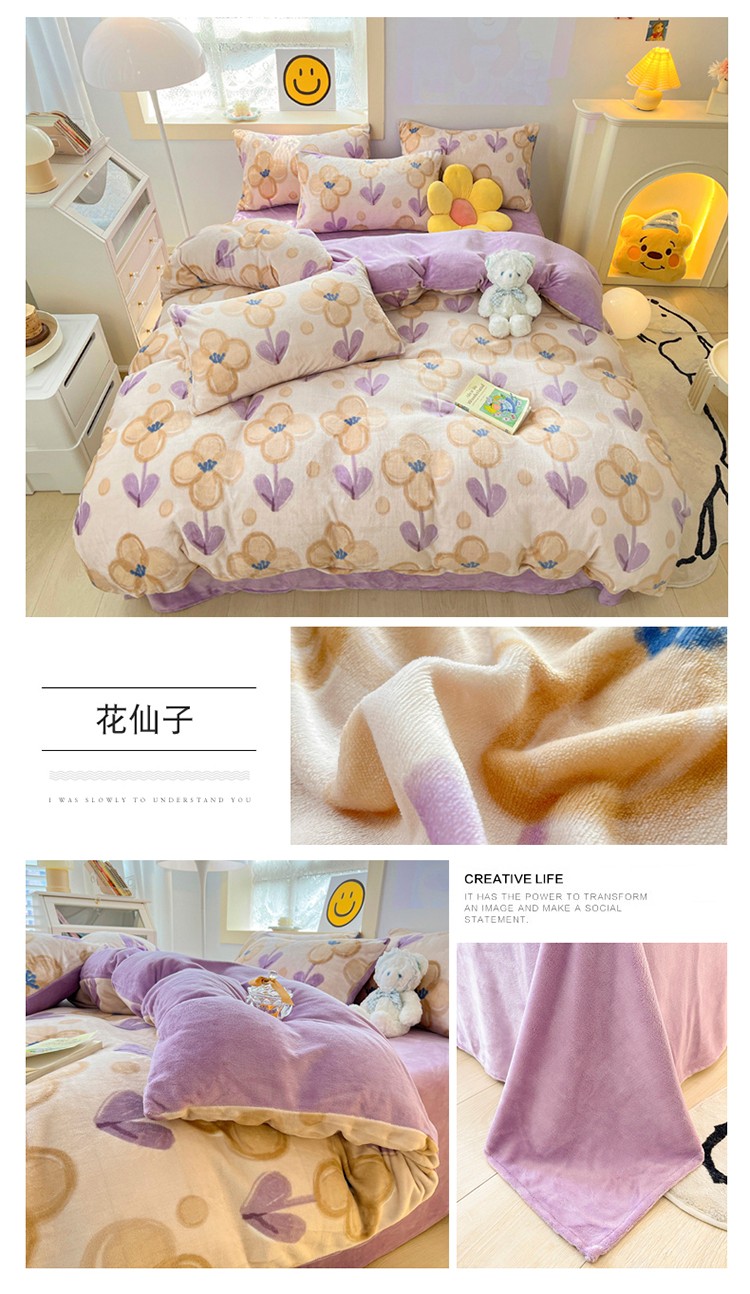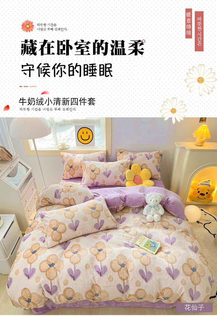 当前位置: 91家纺网 > 商品网购 > 床品套件 > 四件套 > 牛奶绒四件套 > 金爱家 2023新款牛奶绒小清新四件套 花仙子