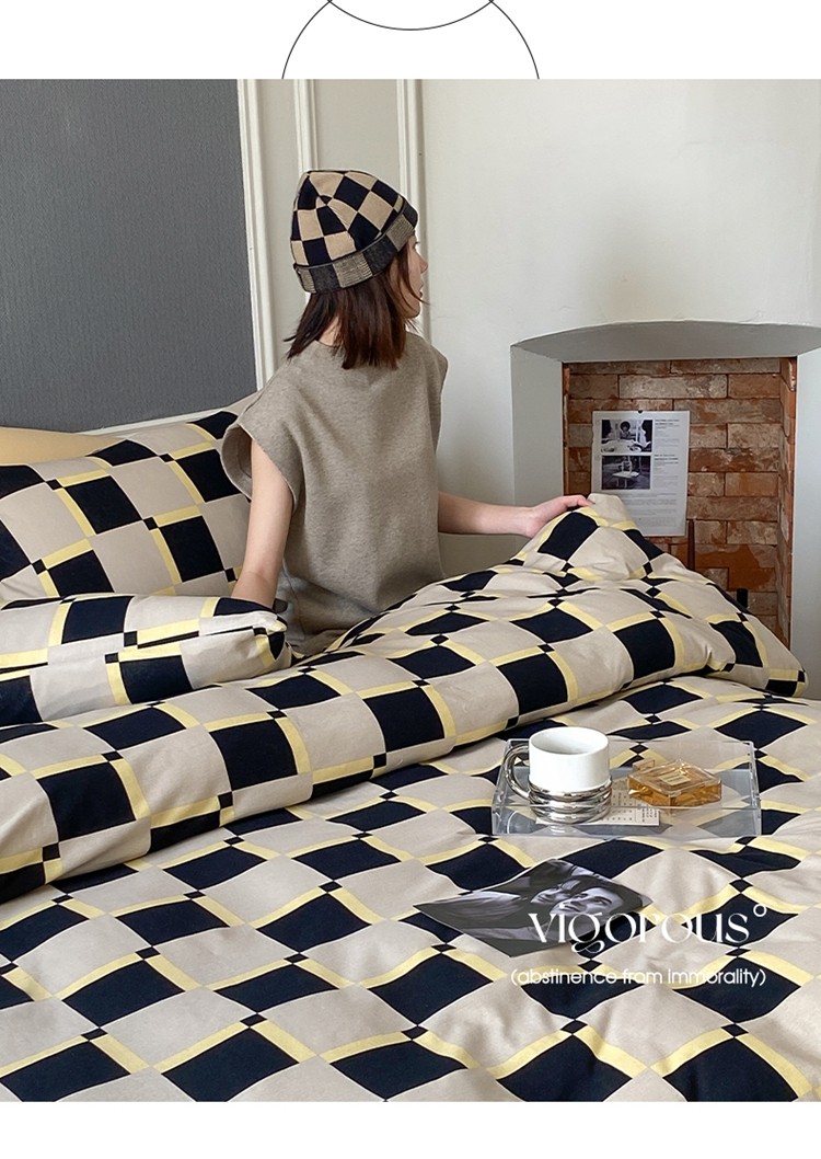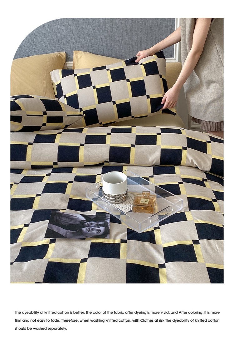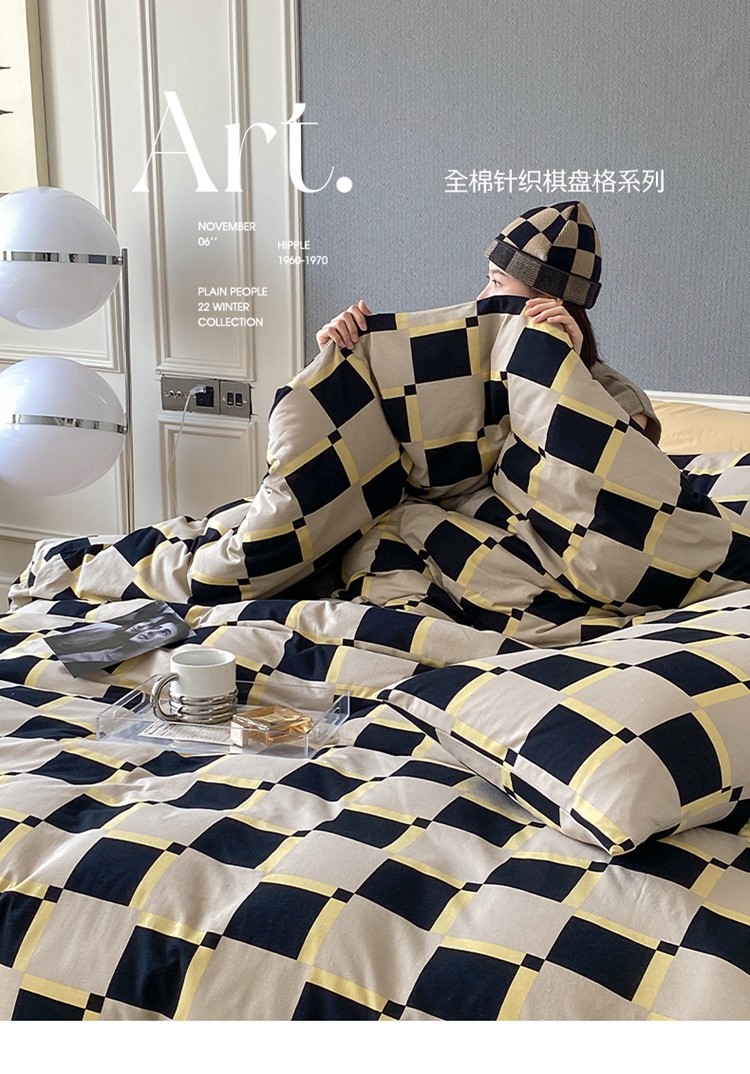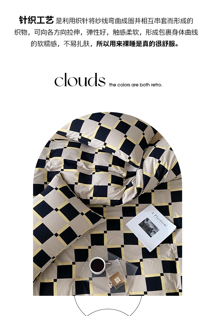 当前位置: 91家纺网 > 商品网购 > 床品套件 > 四件套 > 针织棉四件套 > 风向标家纺 2022针织三色棋盘格四件套 黑糖奶茶