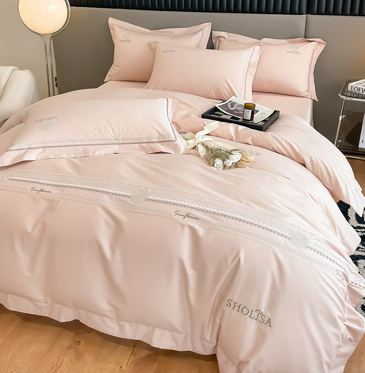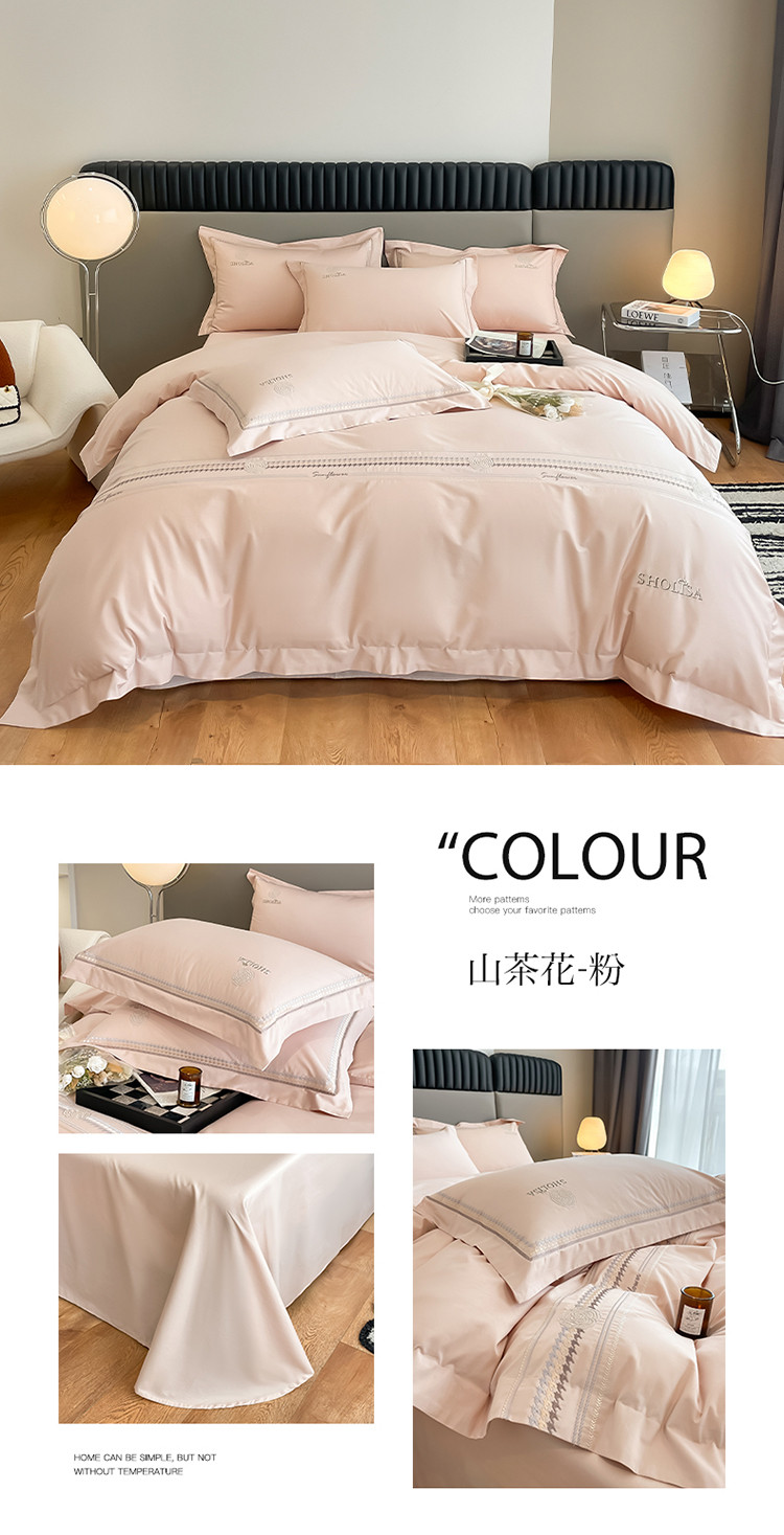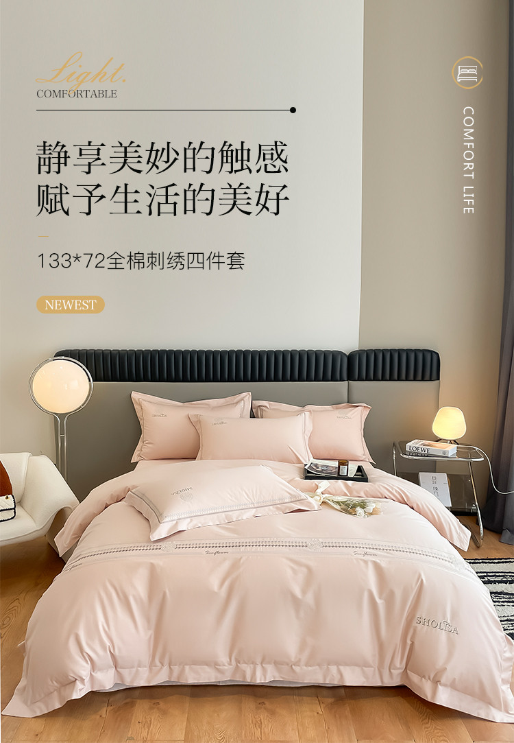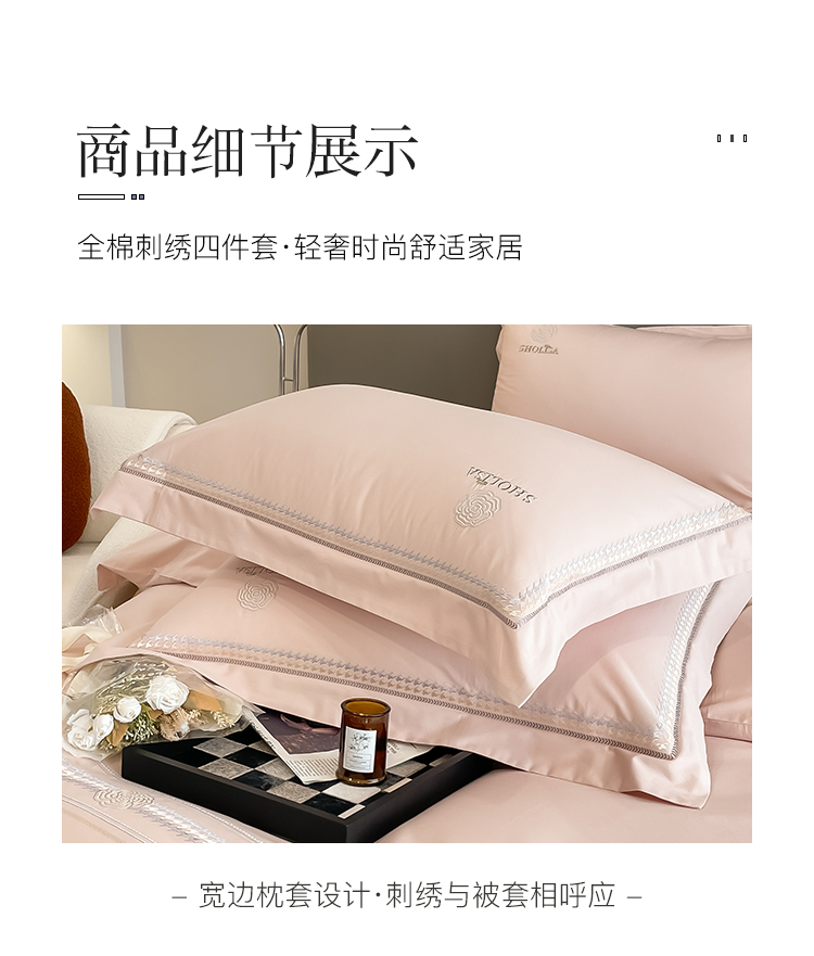 商品名称:理想家家纺 2022新款山茶花系列13372全棉刺绣四件套 山茶花-粉