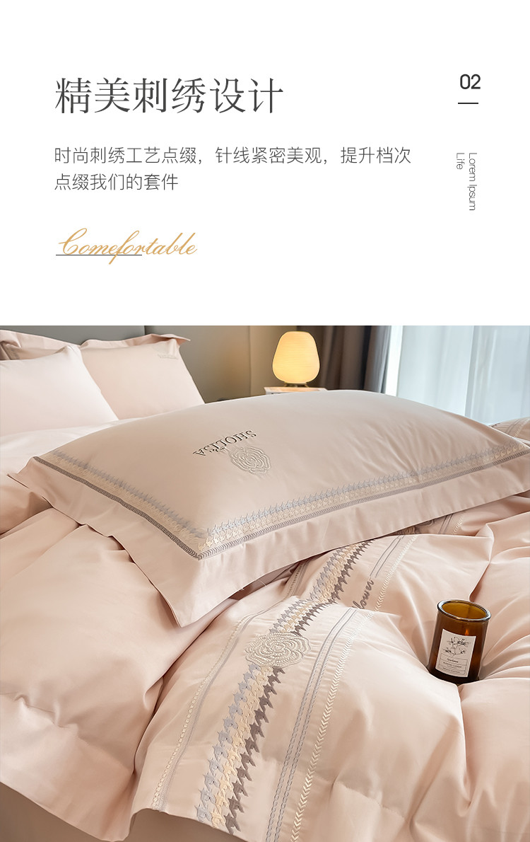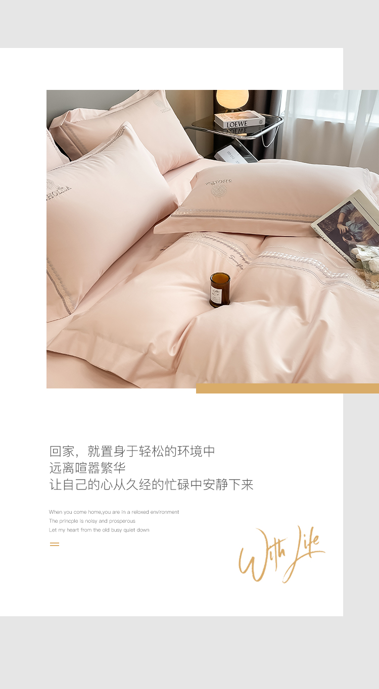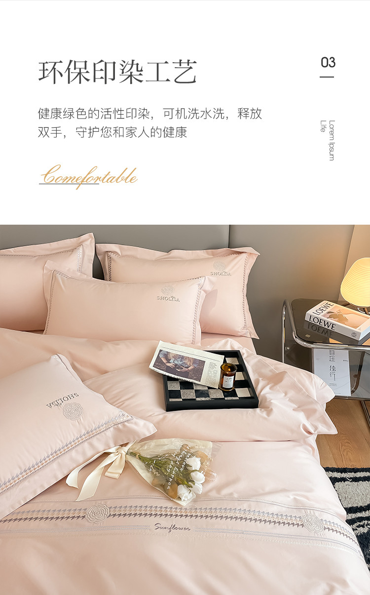 (总)理想家家纺 2025新款纯棉轻奢刺绣四件套-小秘密系列场景二,小秘密 粉,小秘密 黄,小秘密 蓝