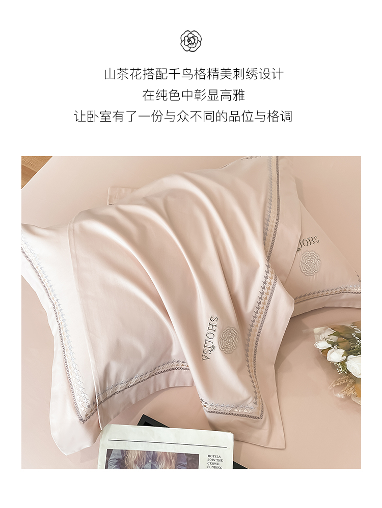 理想家家纺 2022新款山茶花系列13372全棉刺绣四件套 山茶花-粉