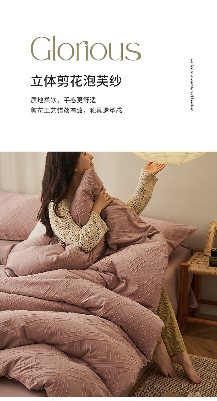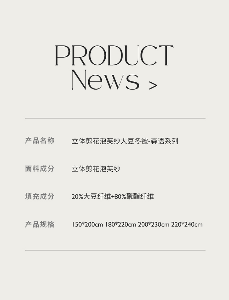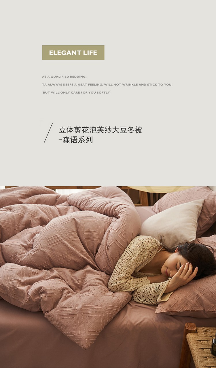 商品名称:2022新款立体剪花泡芙纱大豆冬被-森语系列 森语-浅豆沙