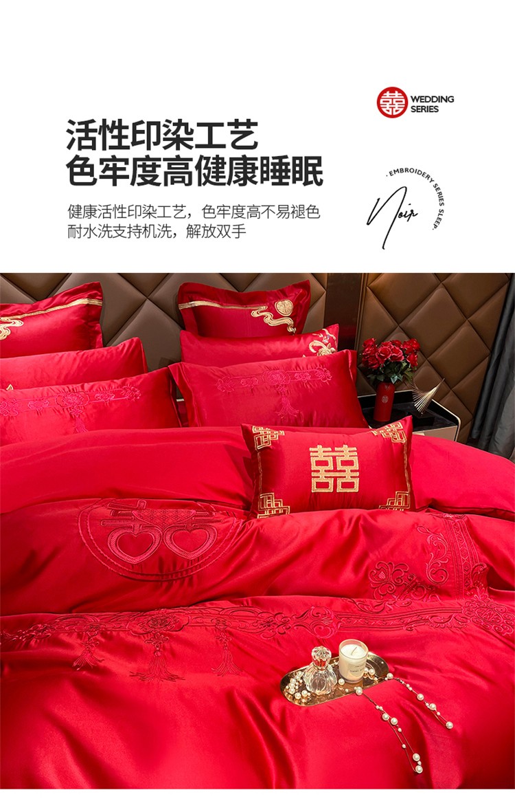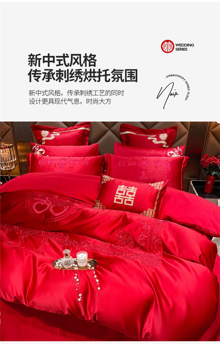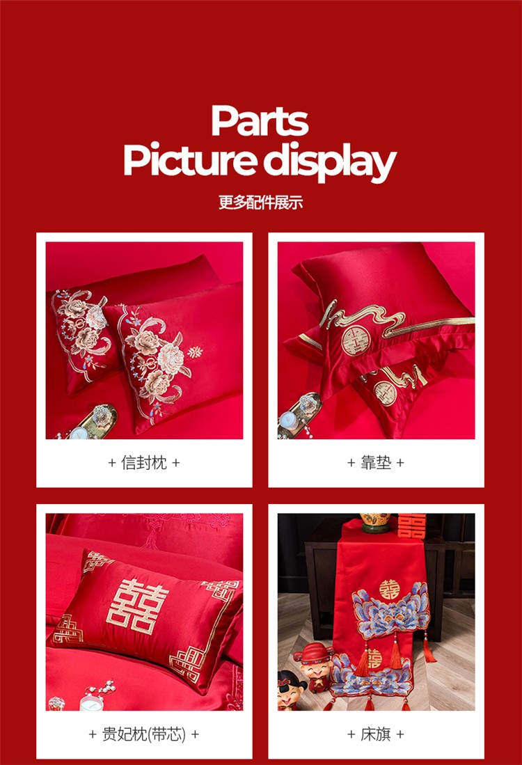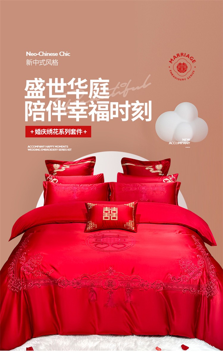 当前位置: 91家纺网 > 商品网购 > 床品套件 > 四件套 > 婚庆四件套 > 千禧 2024新款贡缎磨毛婚庆绣花多件套 盛世华庭