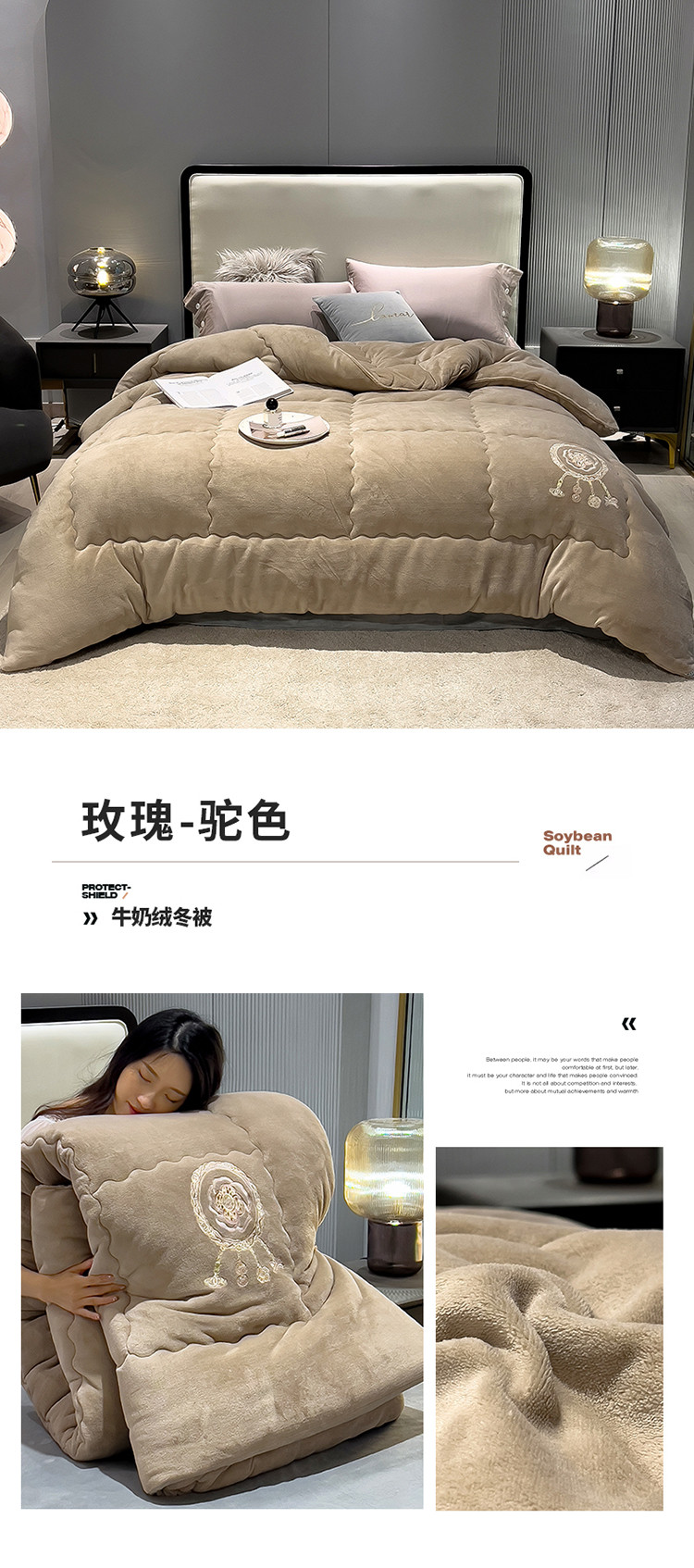 (总)兄弟坊 2022新款牛奶绒纯色刺绣冬被-玫瑰系列